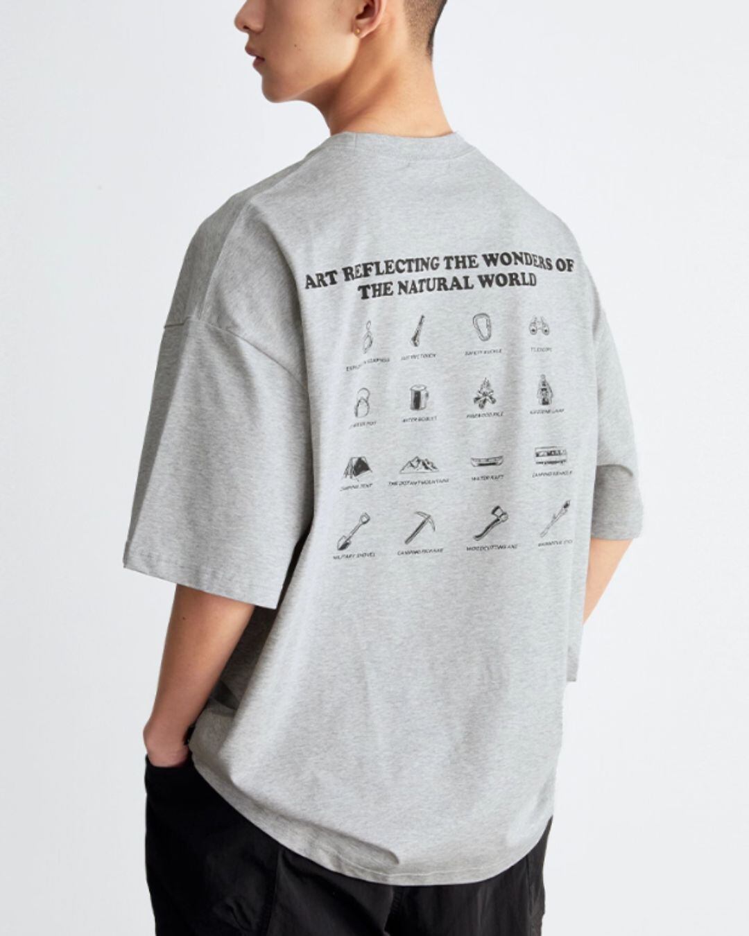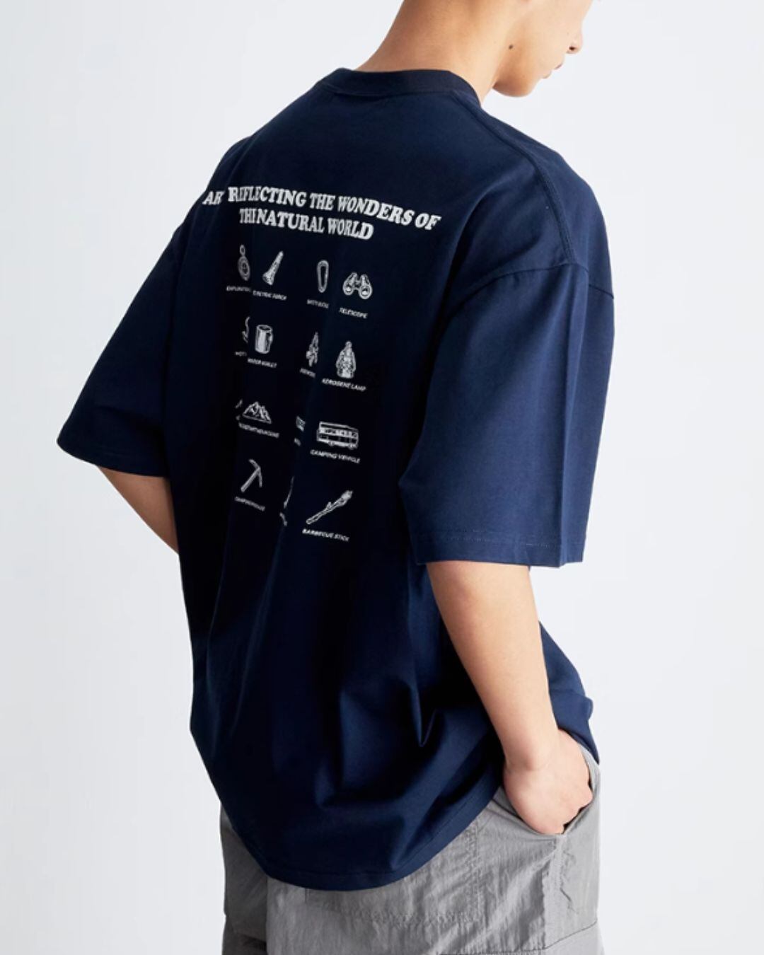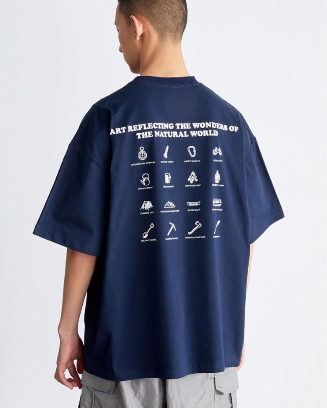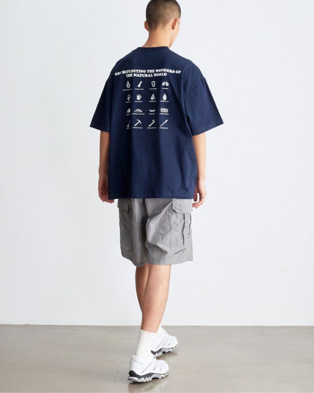 バックプリントが個性的で目を引く半袖Tシャツ。オーバーサイズでリラックスした着心地を実現し、ボックスシルエットがトレンド感を演出。