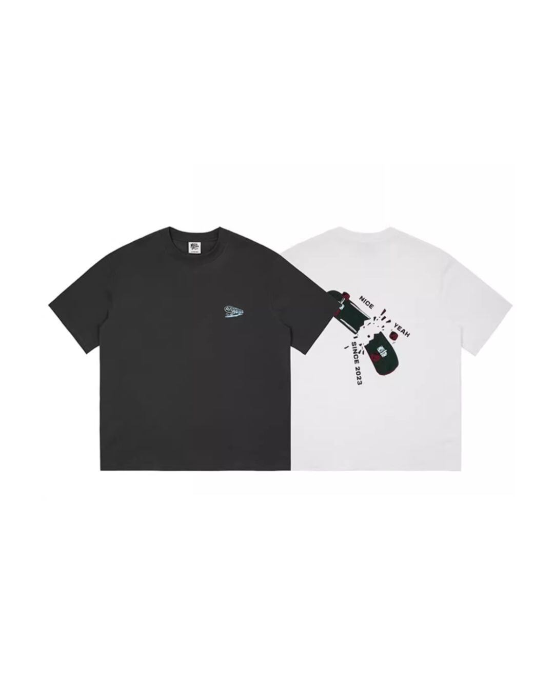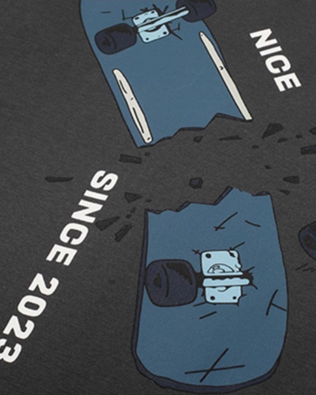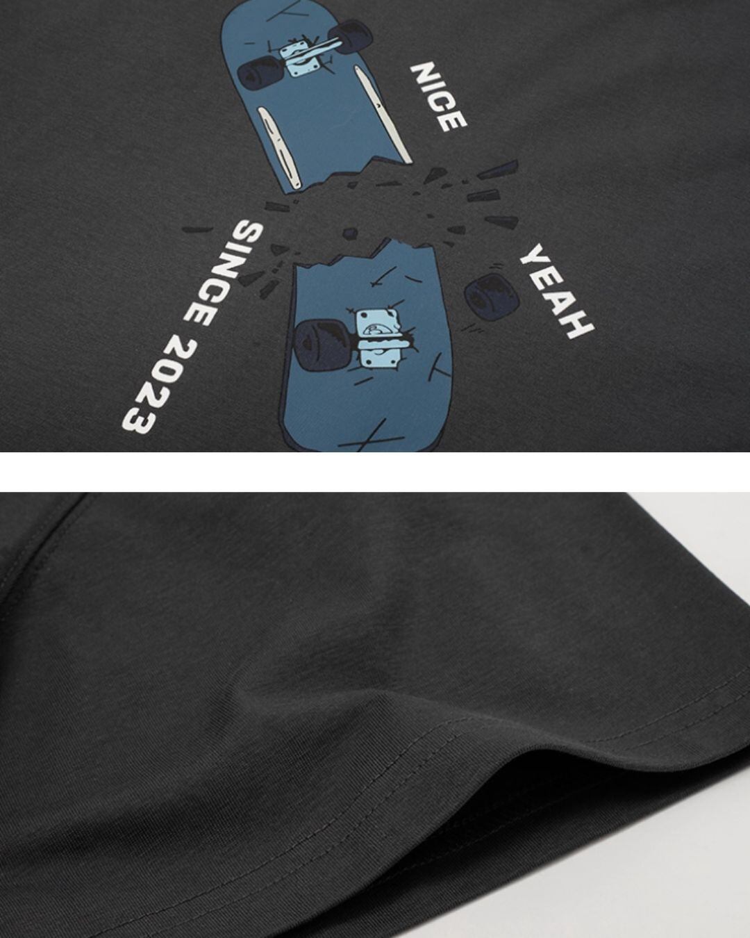 スケートボード柄バックプリントショートスリーブTシャツ S0023