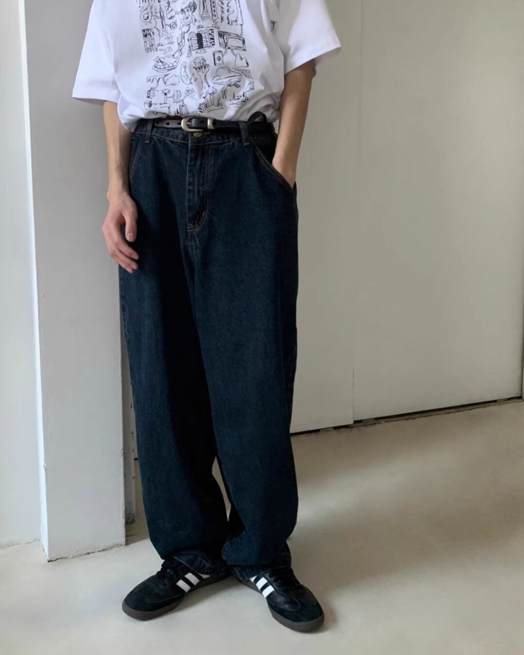 ルーズで快適なシルエットが魅力のストレートデニムパンツ。どんなトップスとも相性抜群で、カジュアルからきれいめまで幅広いスタイルに対応できます。
