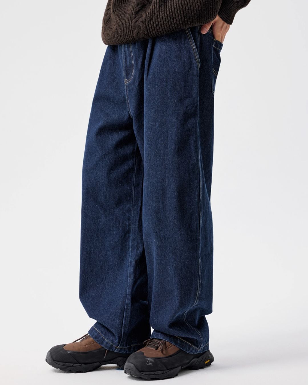 ルーズフィットストレートデニムパンツは、どんなスタイルにも合わせやすい万能アイテムです。
