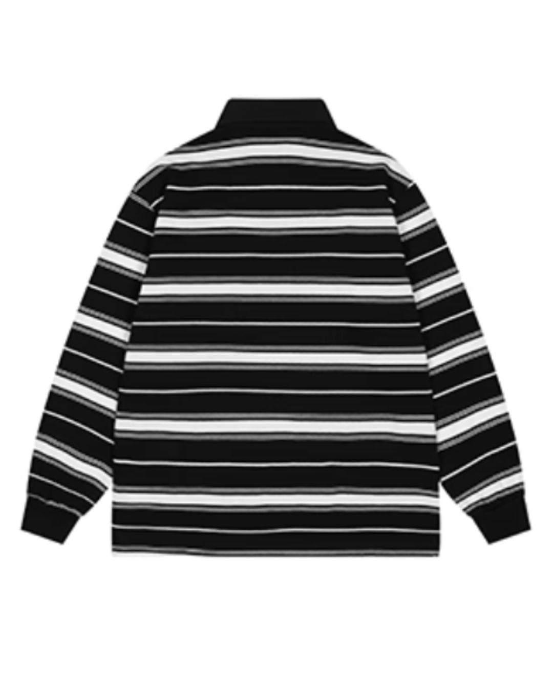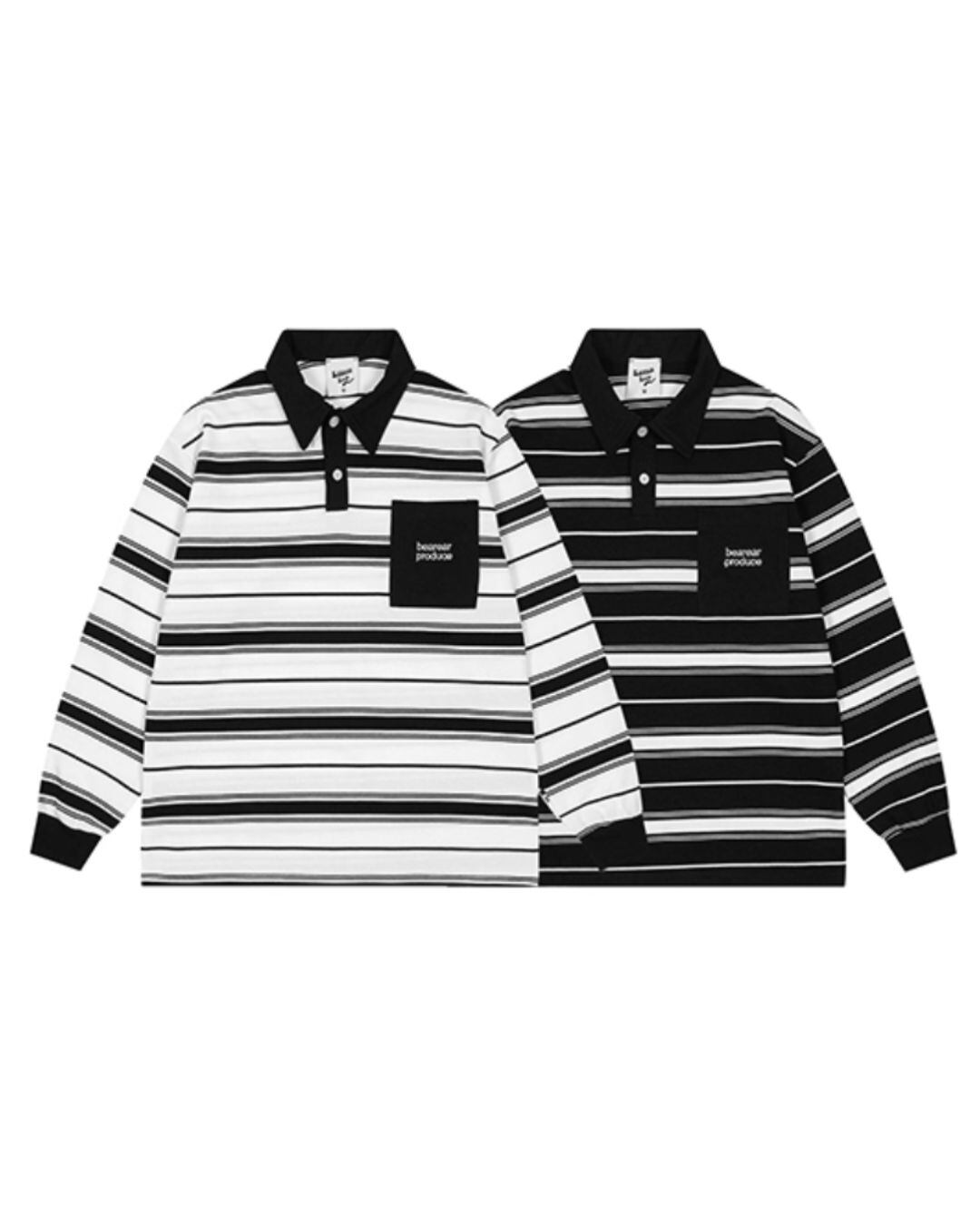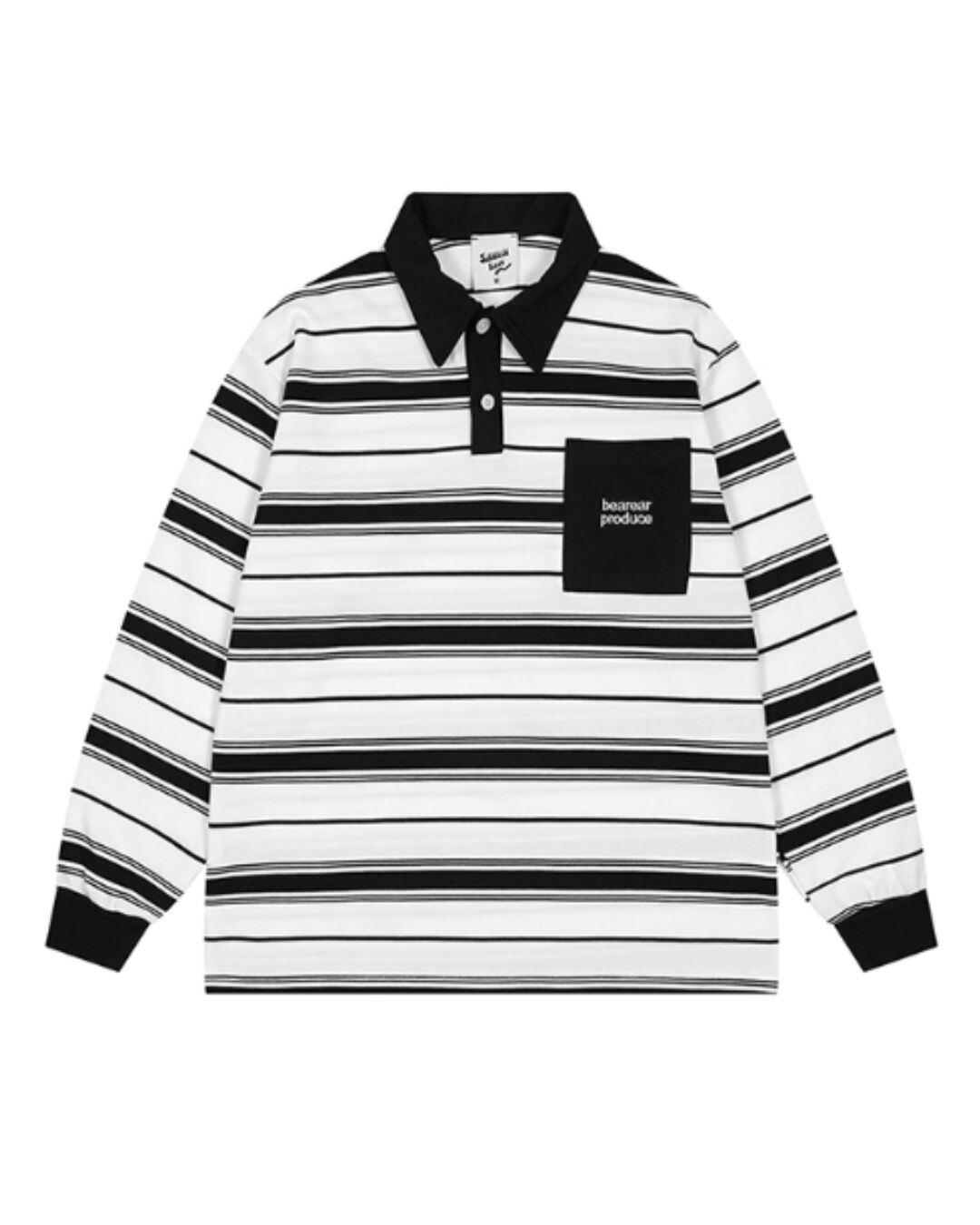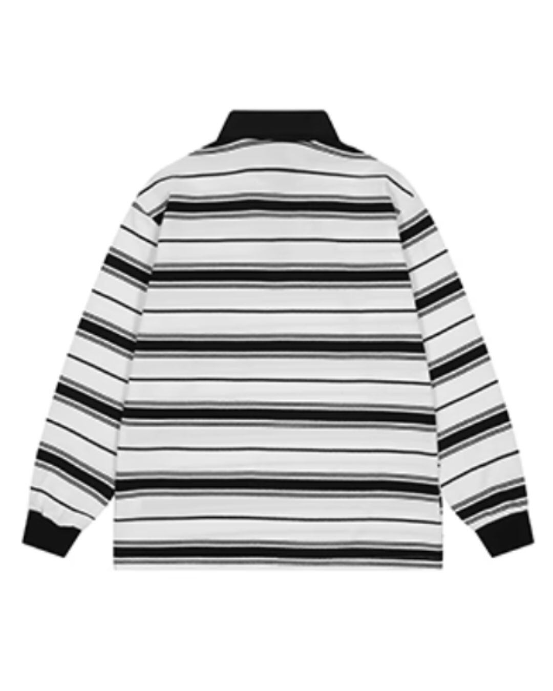 ボーダー柄が印象的なロングスリーブポロシャツ。シンプルなデザインながら、洗練された印象を与え、様々なスタイリングに合わせやすいアイテムです。