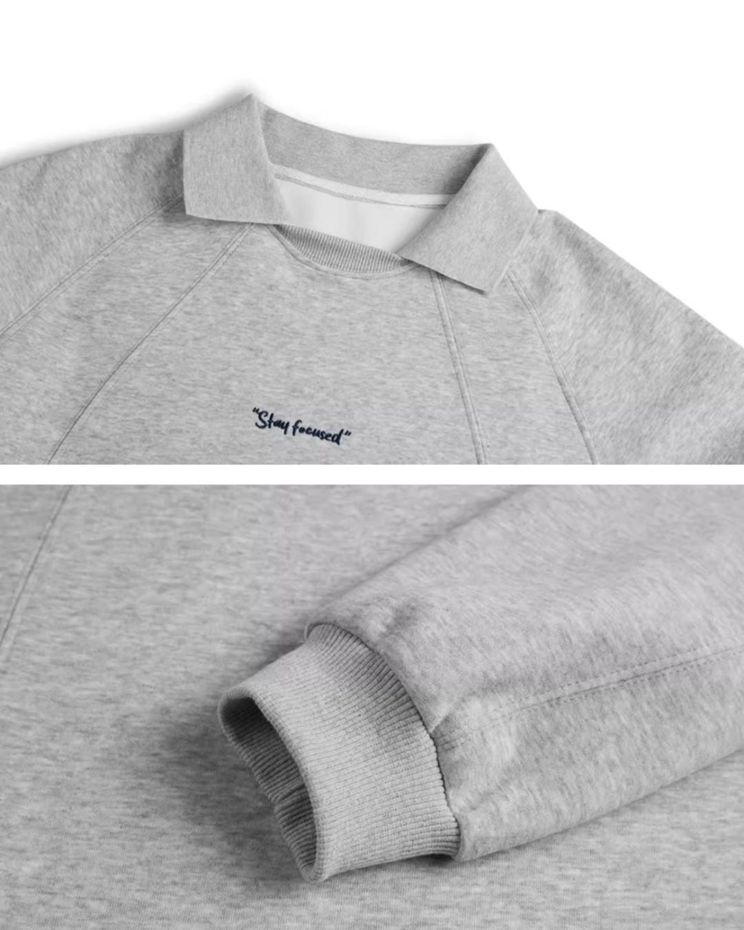 シルエットが魅力のポロカラースウェットプルオーバー。胸元にはさりげないワンポイントロゴが施され、カジュアルながらも洗練された印象を与えます。普