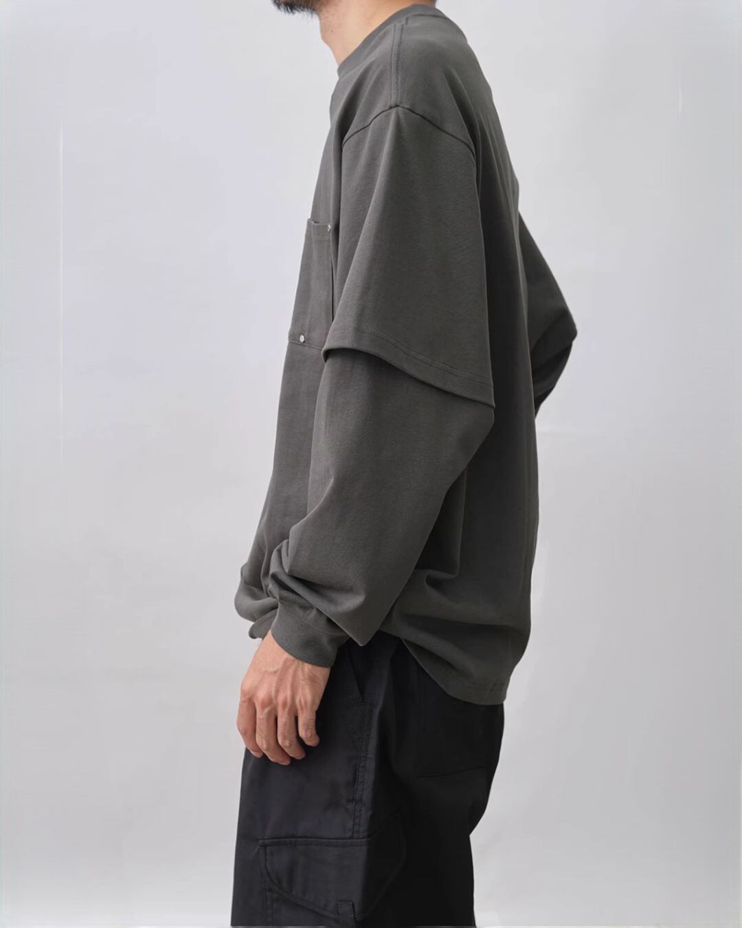 一枚でこなれ感を演出できるクルーネックフェイクツーピースTシャツ。レイヤード風デザインが、着こなしに奥行きを与えてくれます。