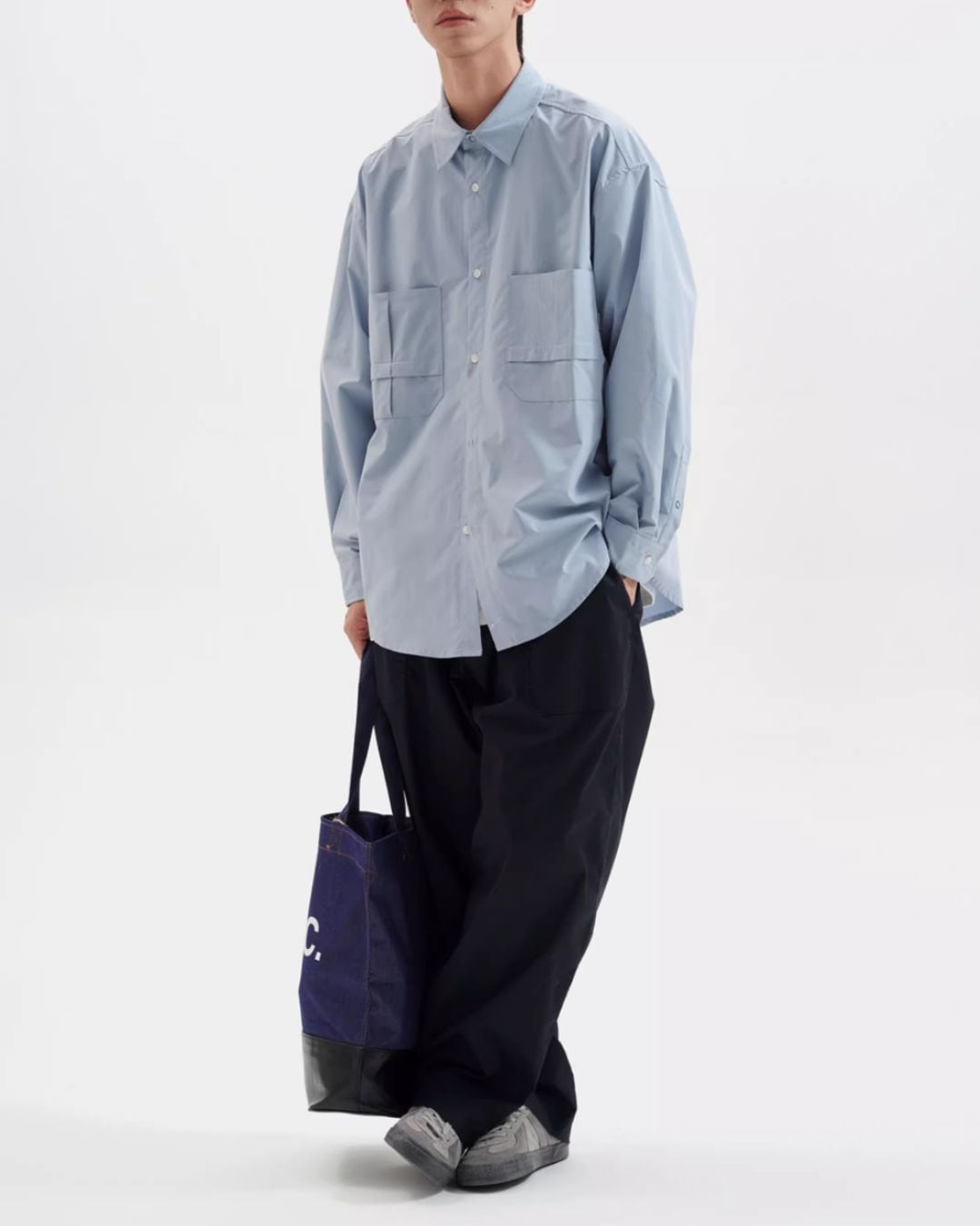 レトロな雰囲気漂うロングスリーブシャツ。大きめのポケットがデザインのアクセントとなり、普段使いからちょっとしたお出かけまで幅広いシーンで活躍します。