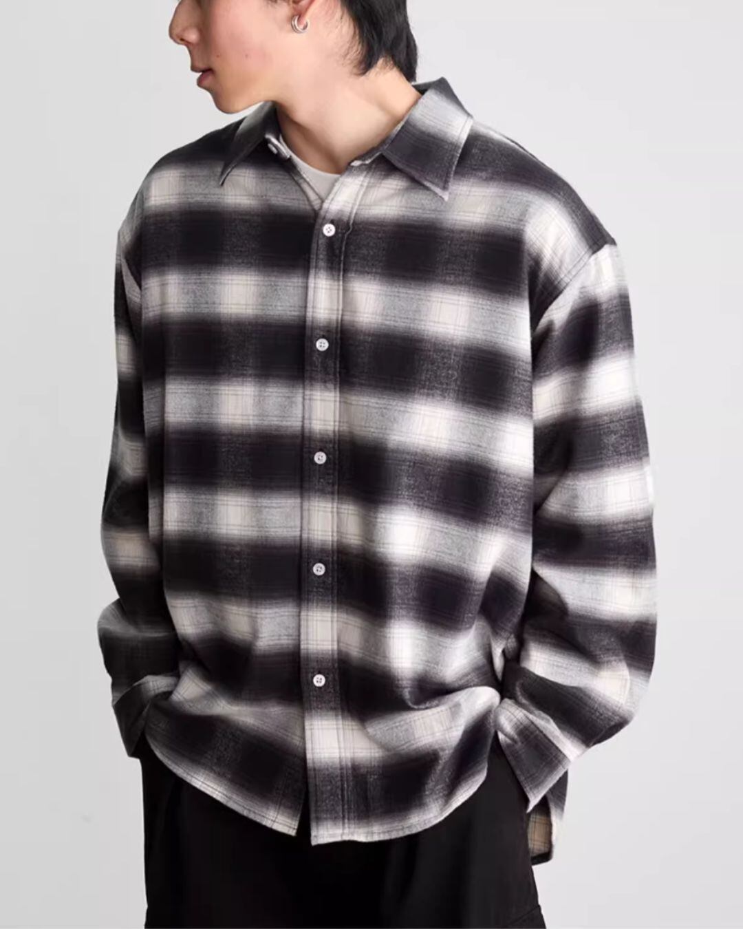 トレンド感のあるオンブレチェック柄のシャツ。ヴィンテージな雰囲気ながらキレイ目にも合わせやすい万能アイテムです。