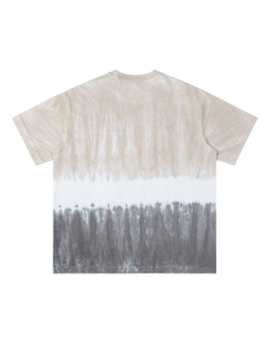 クルーネックのショートスリーブTシャツは、タイダイ染めの美しいグラデーションが魅力です。シンプルなデザインながら、洗練された印象を与え、様々なスタイルに合わせやすいアイテムです。