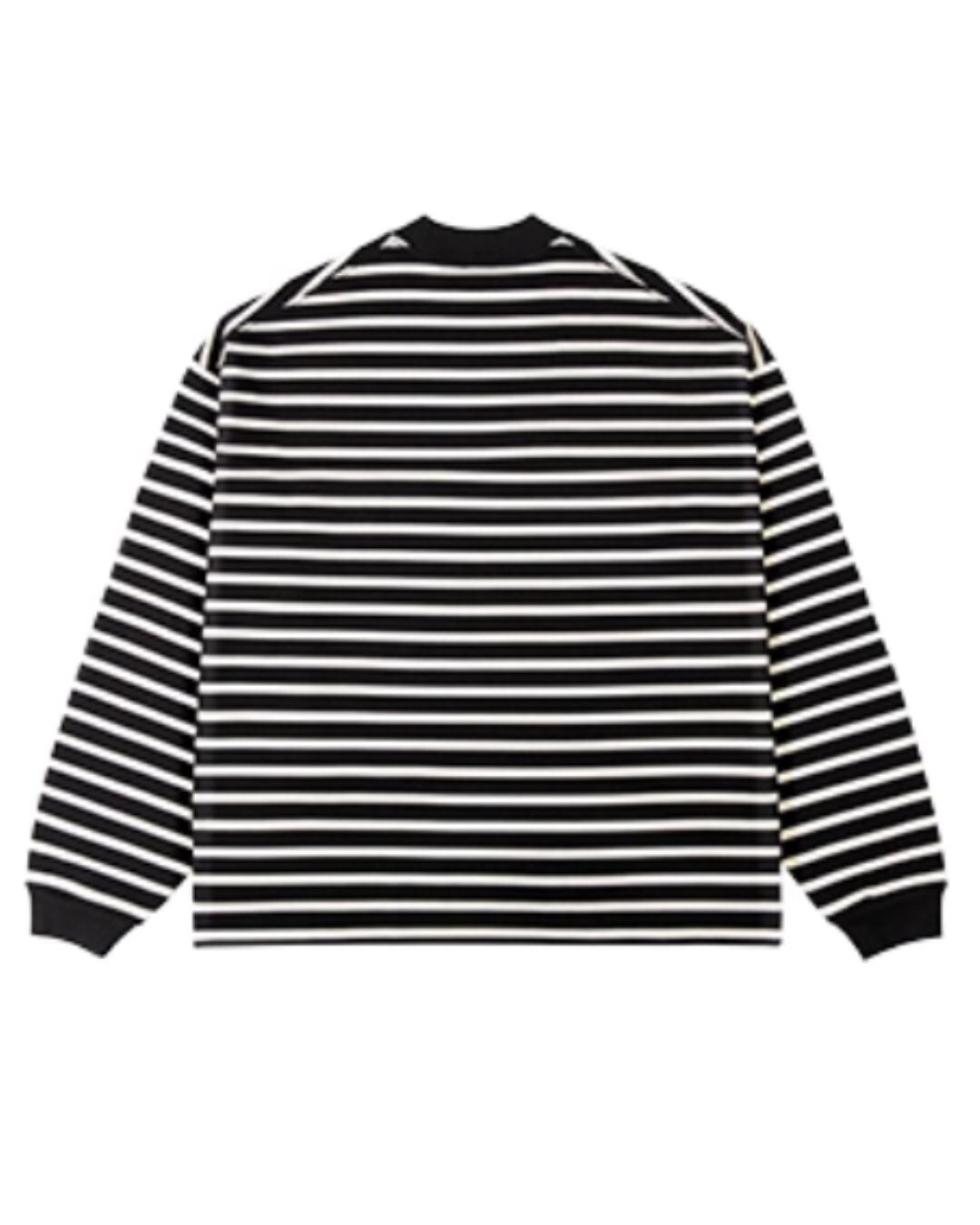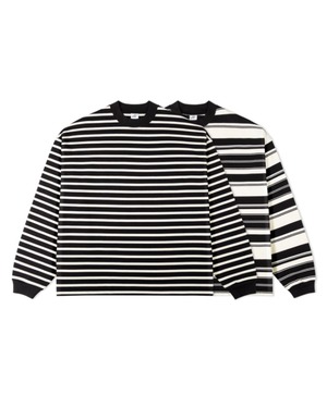 クルーネックとロングスリーブのデザインが、着こなしやすさと上品さを兼ね備えたボーダーTシャツ。定番のブラックとオフホワイトの組み合わせは、どんなスタイルにも合わせやすく、着回し力抜群です。