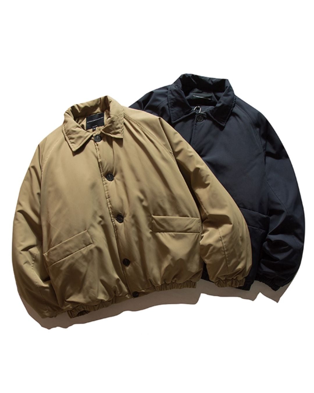 フロントボタンが特徴的なブルゾンジャケット。