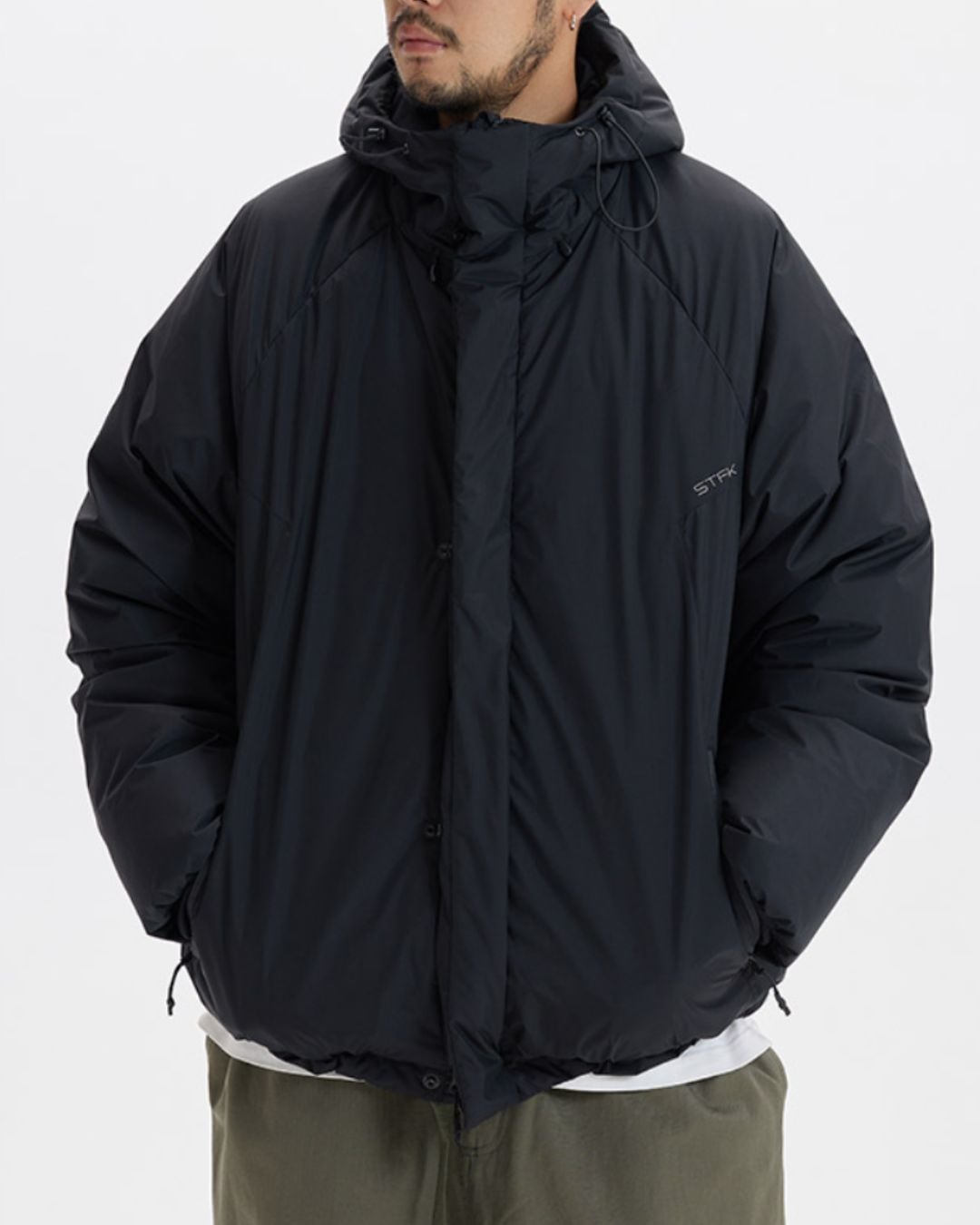 普段使いに最適なフーデッドジップアップダウンジャケット。