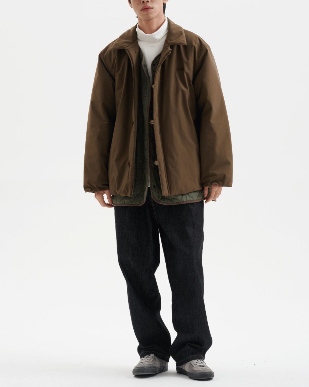 ゆったりとしたシルエットが魅力のコーチジャケット。カジュアルな着こなしはもちろん、シックなスタイリングの外しアイテムとしても活躍します。