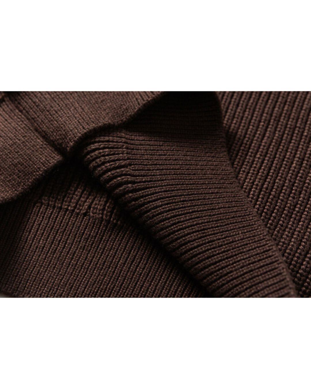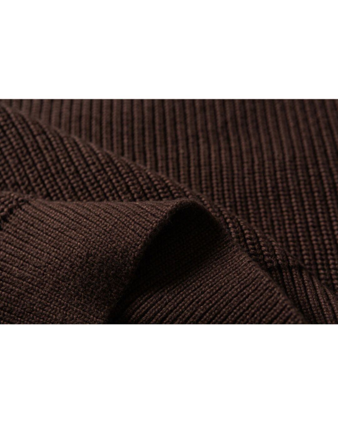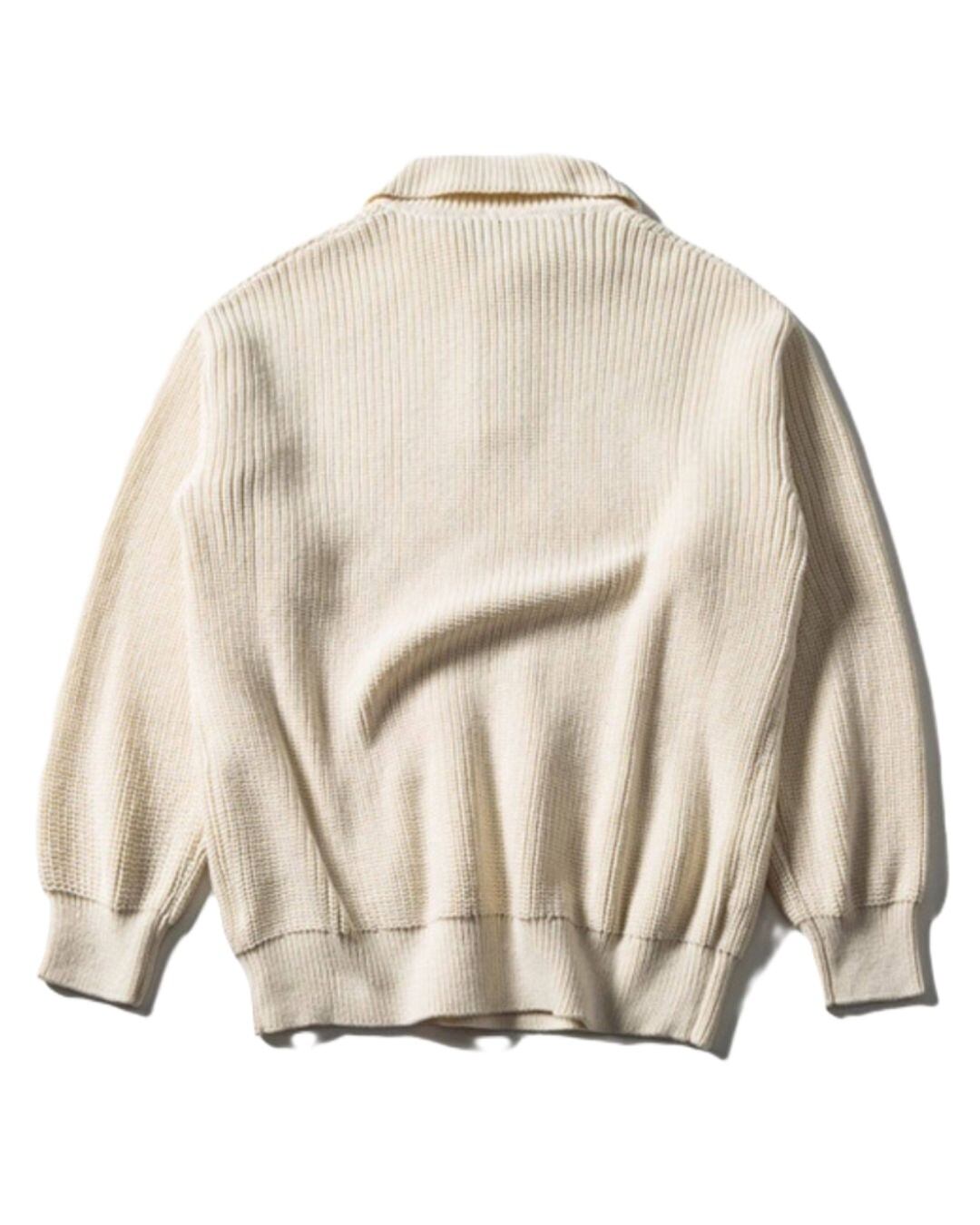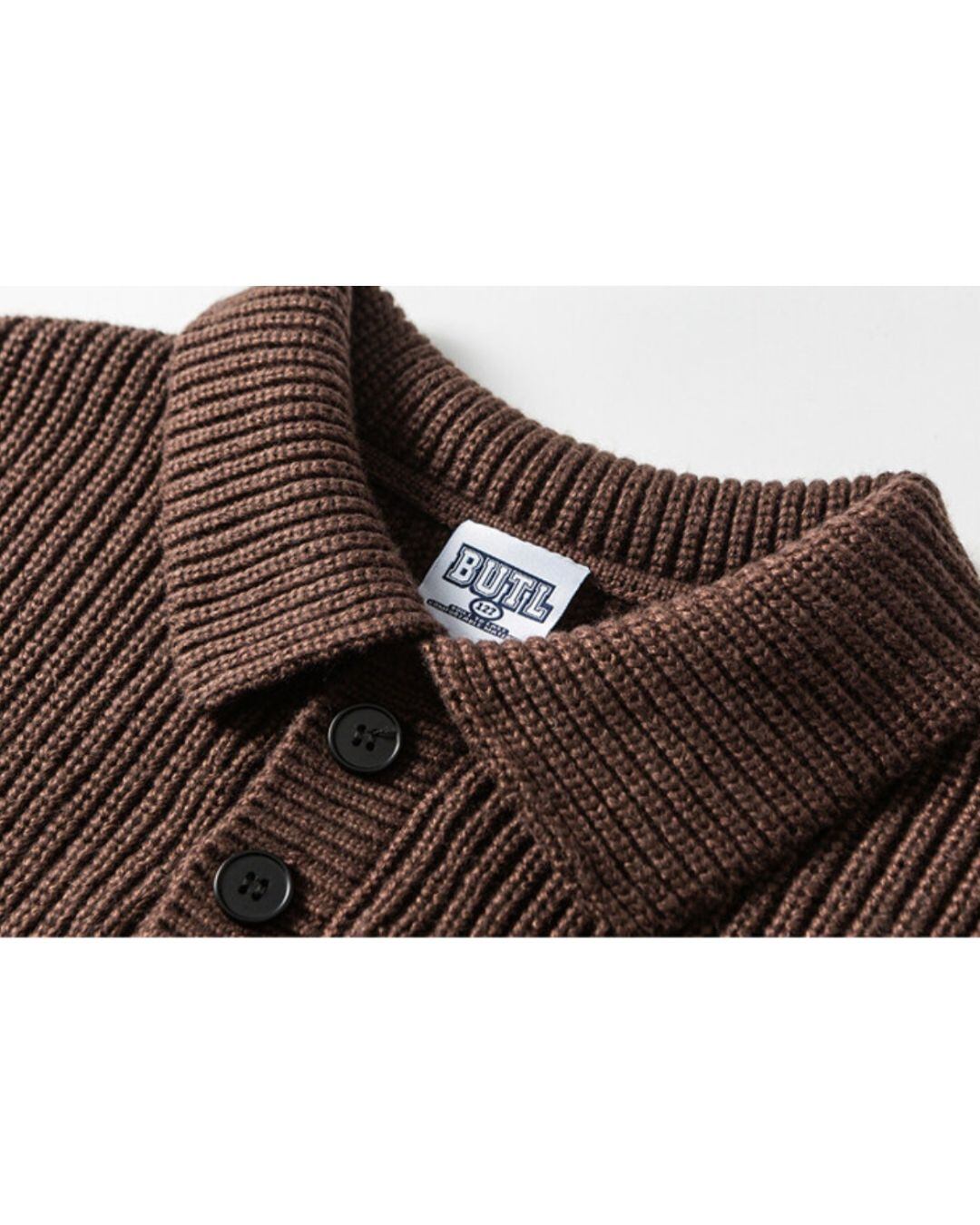 リブ編みが特徴的なセーター。ポロカラーのデザインが、カジュアルながらも上品な印象を与えます。