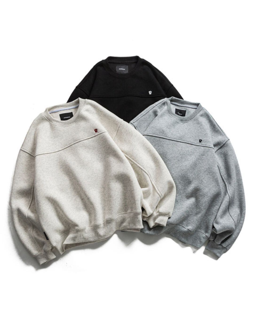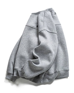 目を引く切り替えデザインが特徴的なスウェットシャツ。カジュアルながらも、さりげない個性を演出します。
