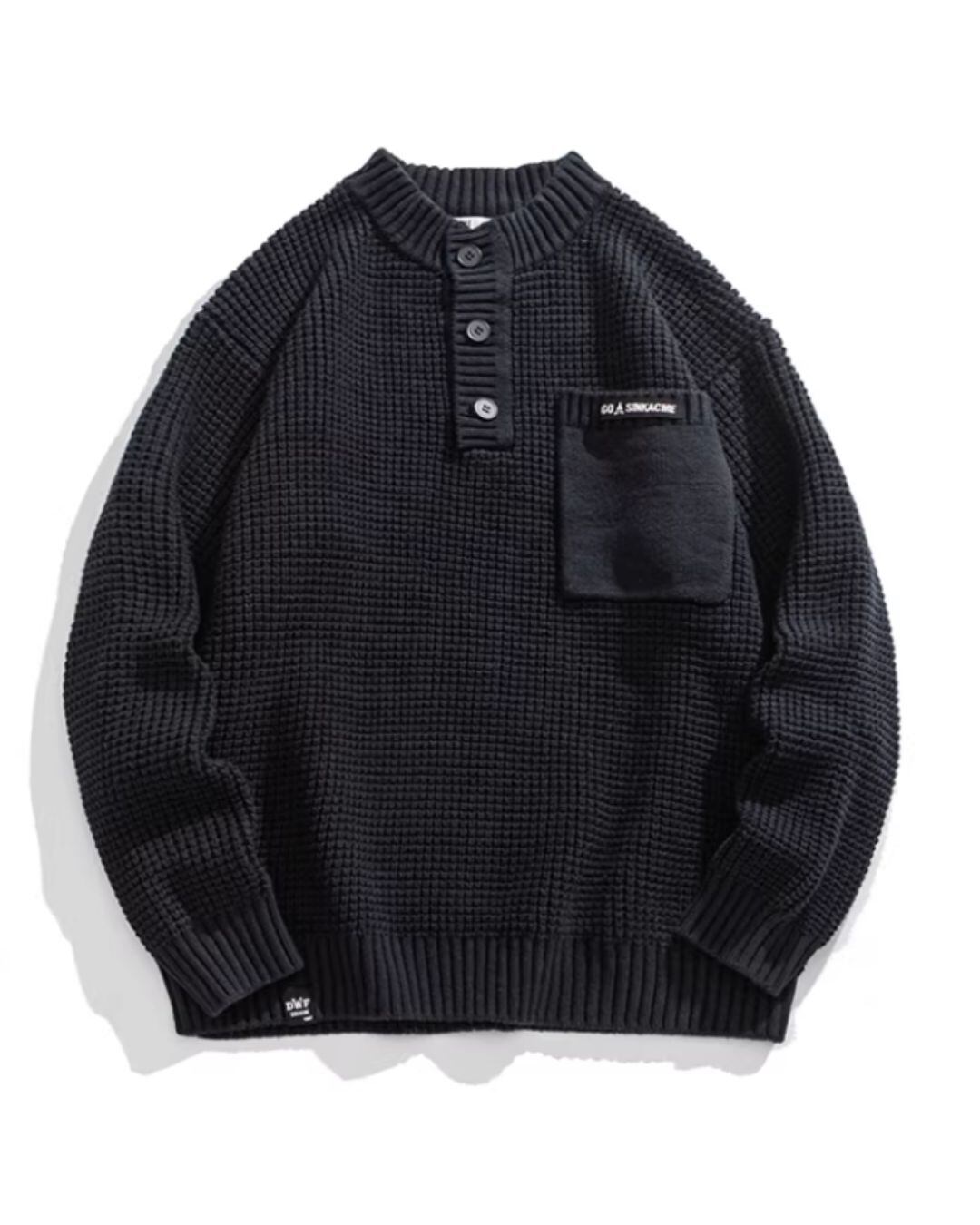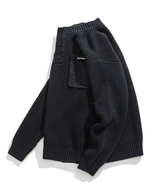 首元にアクセントを添えるヘンリーネックデザインが、カジュアルながらも洗練された印象を与えるリブニット。胸元のポケットが、さりげない個性を演出します。