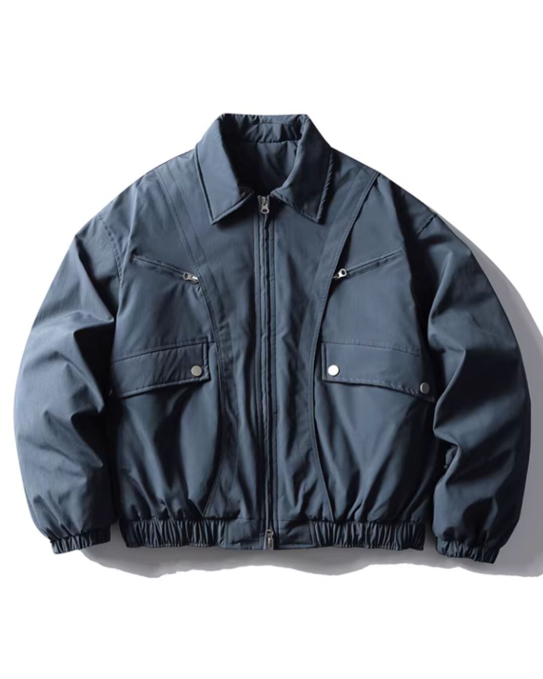 機能性とデザイン性を兼ね備えたワークジャケット。複数のポケットが配置されており、小物を整理して収納できます。