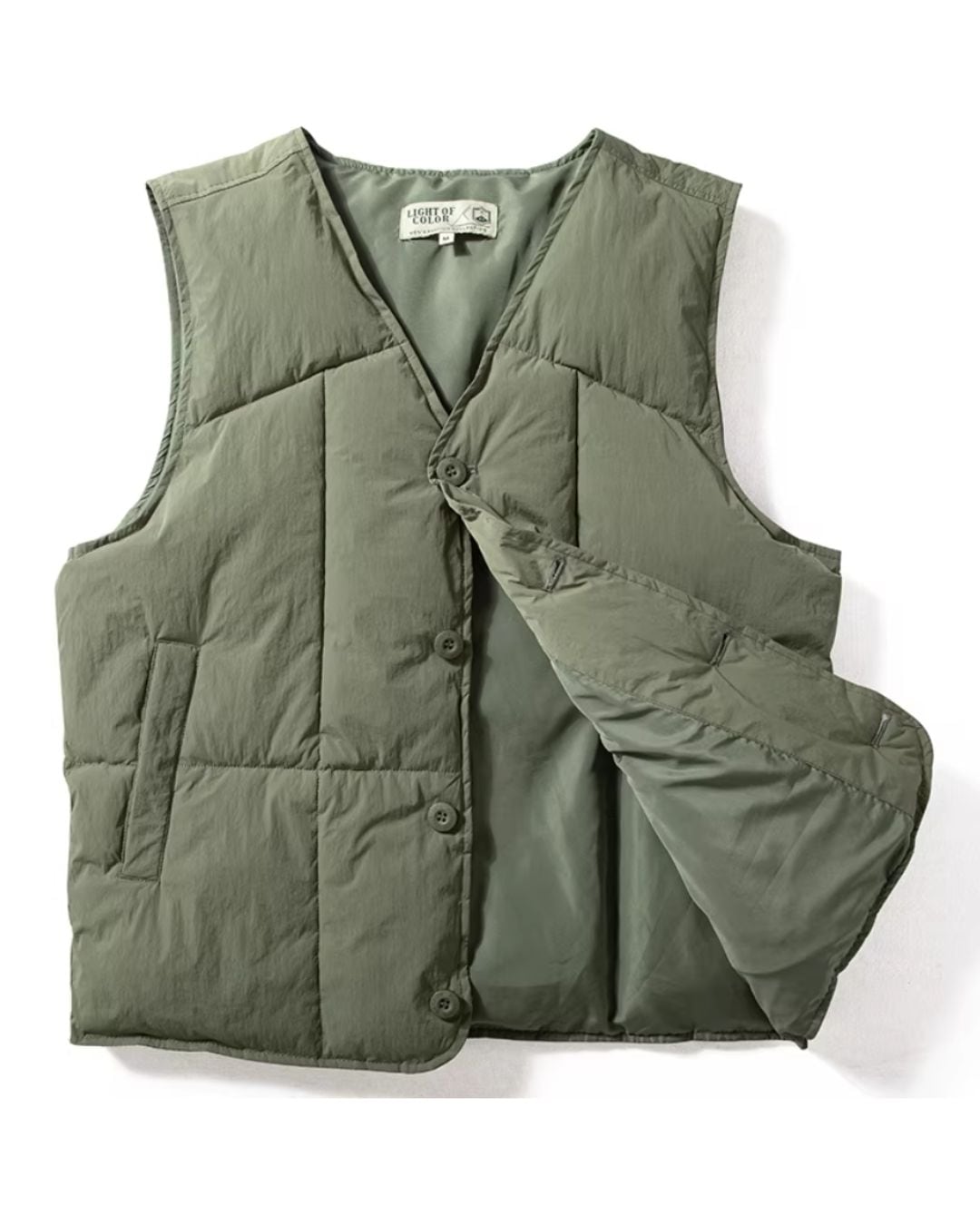 Vネックデザインが特徴のベストジャケットです。シャツやカットソーの上から羽織るだけで、コーディネートにこなれ感をプラス。季節の変わり目にコートやジャケットのインナーとしても活躍します。