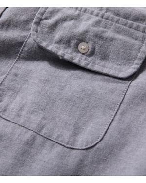 カジュアルな着こなしにぴったりのボタンフロントシャツ。胸元のパッチポケットが、さりげないアクセントを加えています。