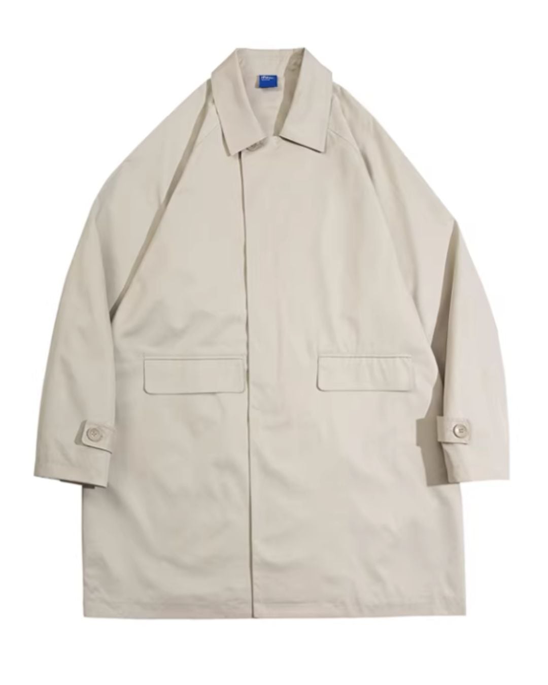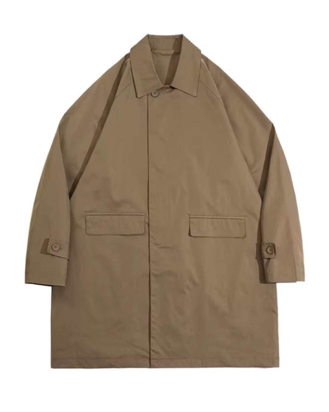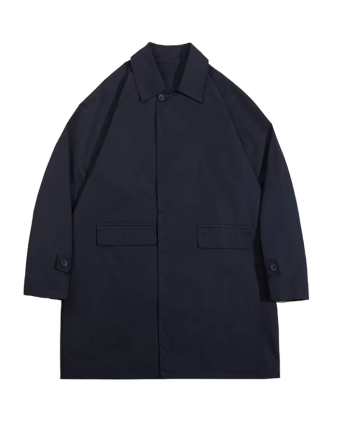 都会的な印象を与えるミドル丈トレンチコート。程よい丈感で、ボトムスを選ばず、様々なコーディネートに合わせやすいのが魅力です。無駄のないシンプルなデザインで、普段使いからビジネスシーンまで幅広く活躍します。