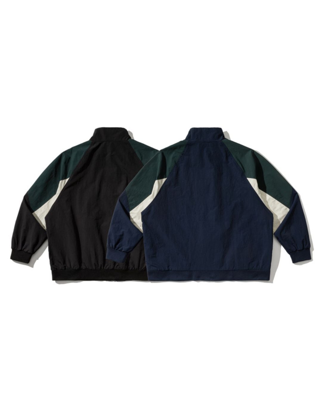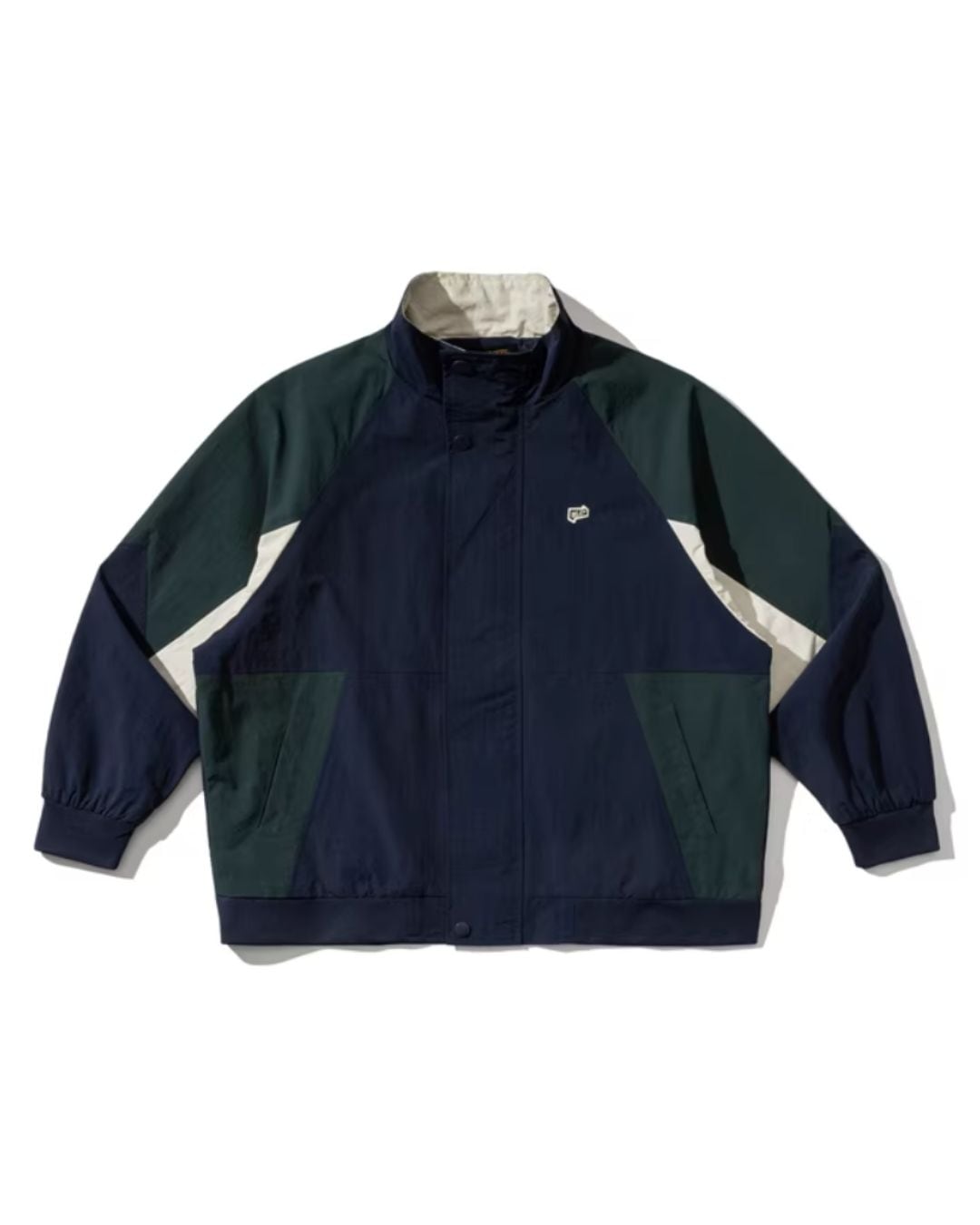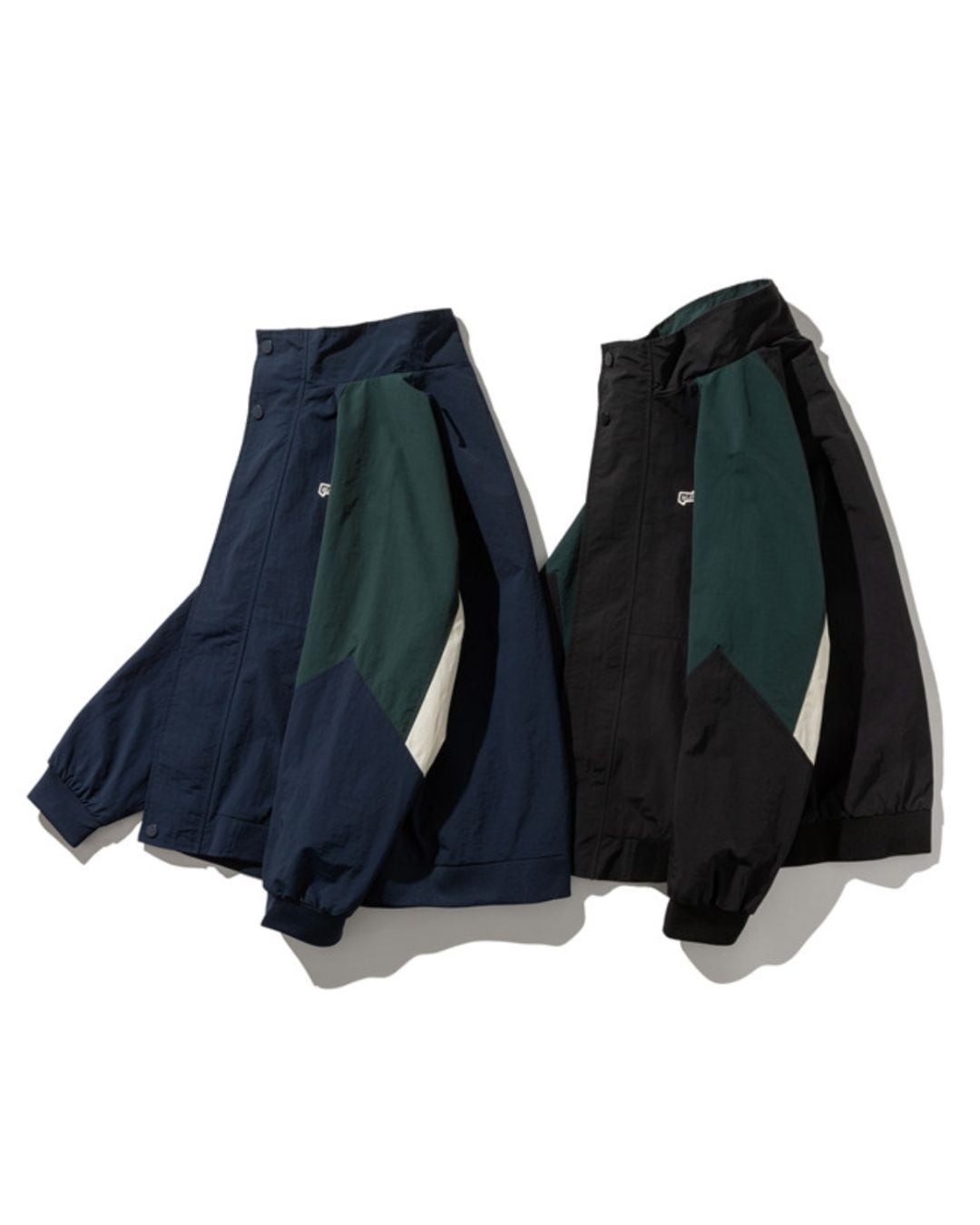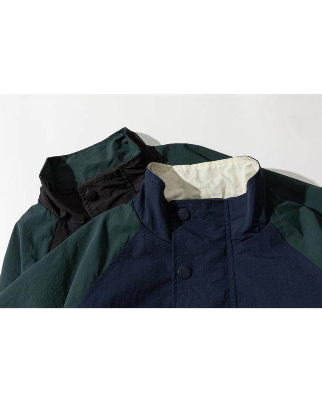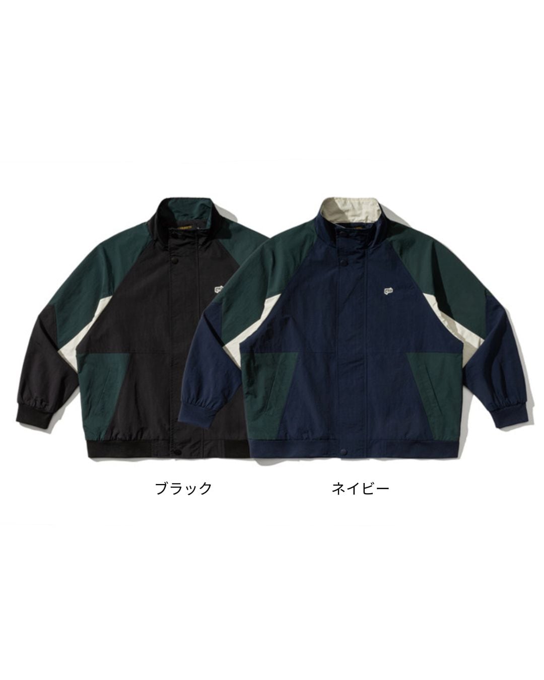 印象的な配色が魅力のアウター。動きやすいシルエットなので、アウトドアシーンにも最適です。