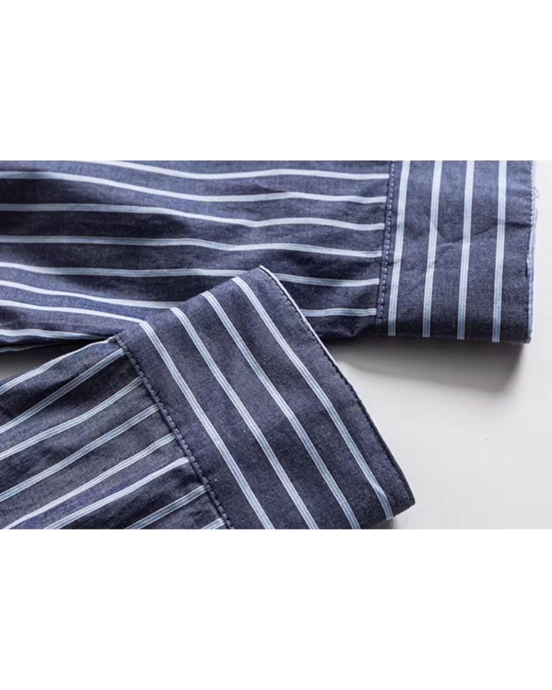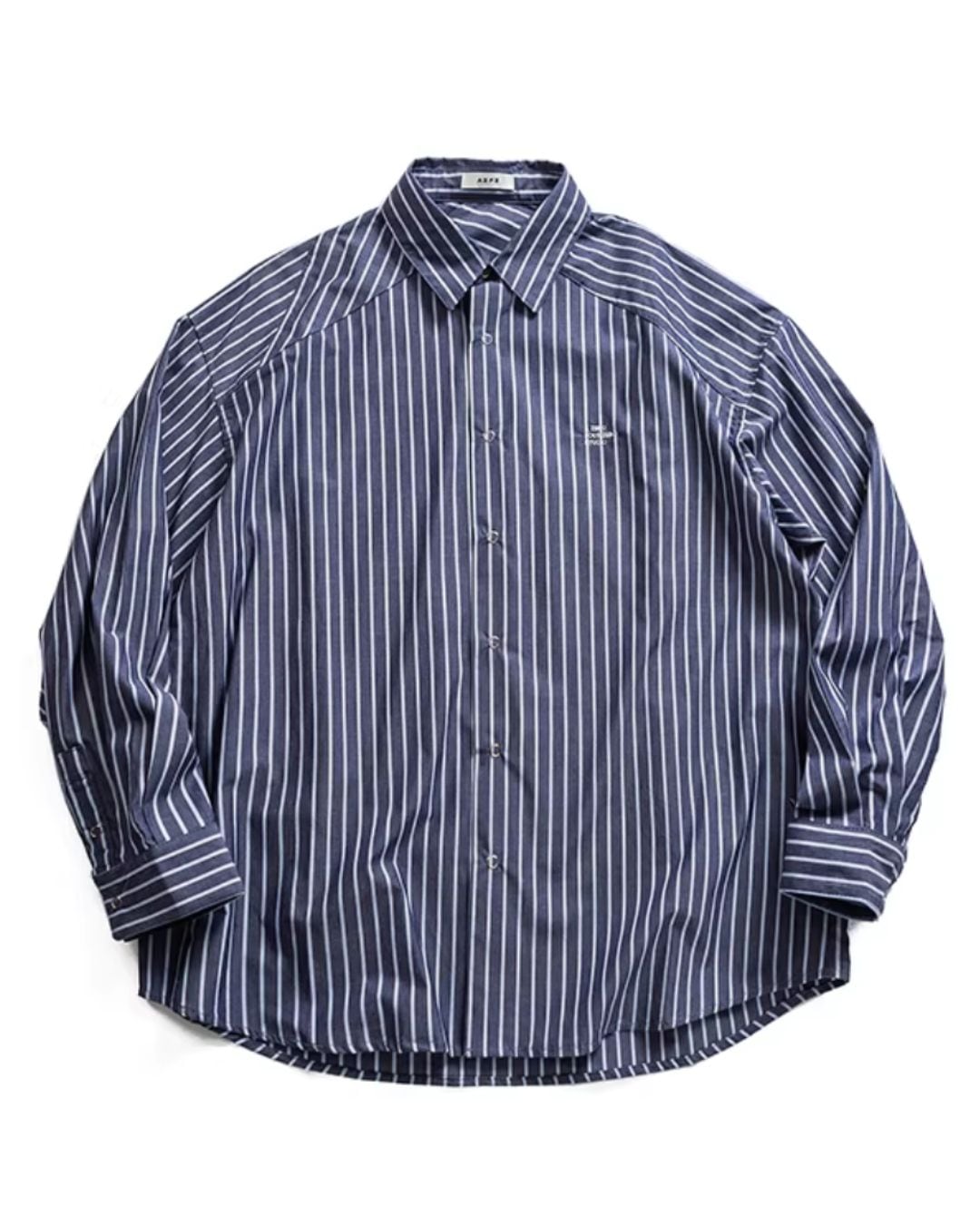 ストライプ柄が目を引くオーバーサイズシャツ。