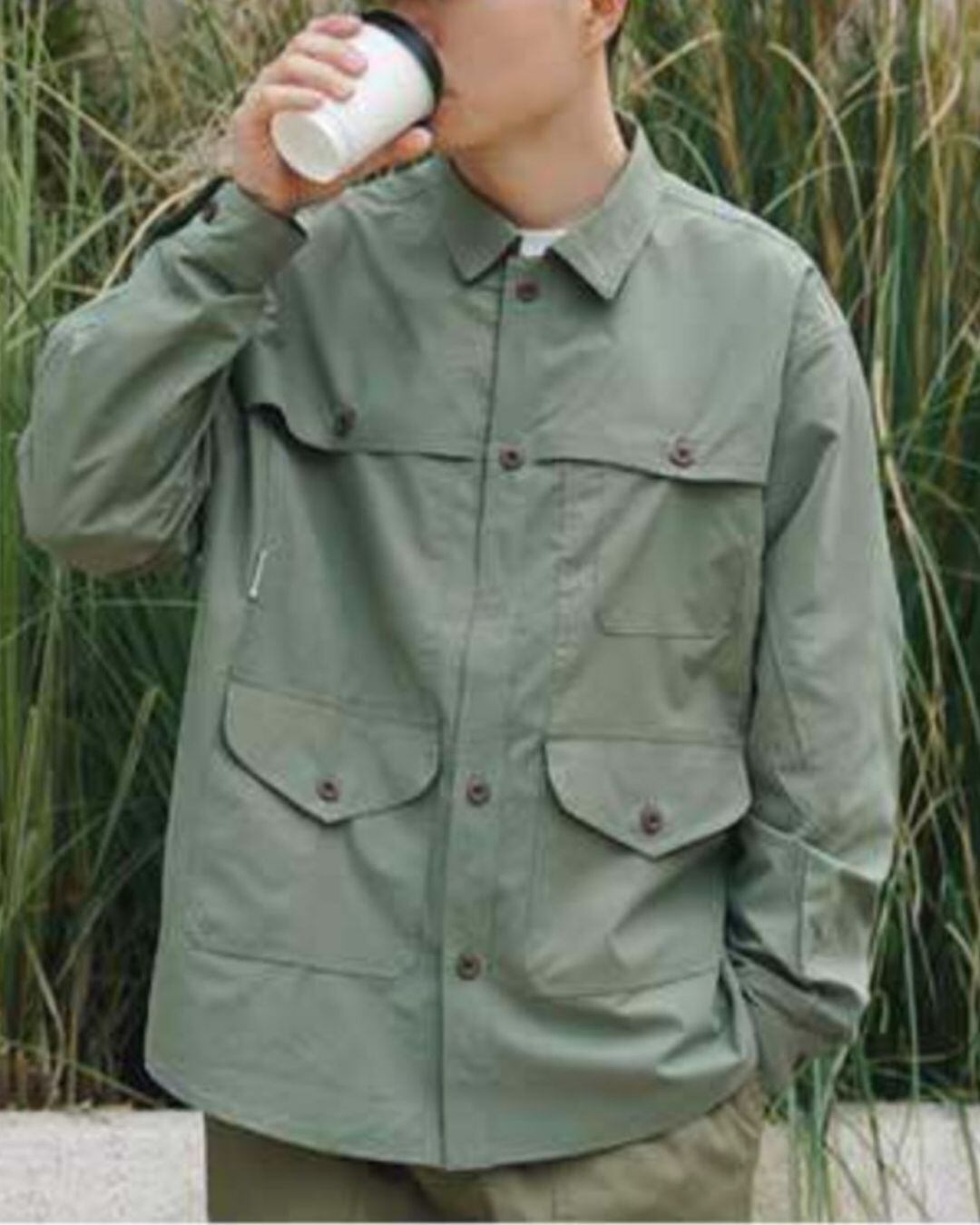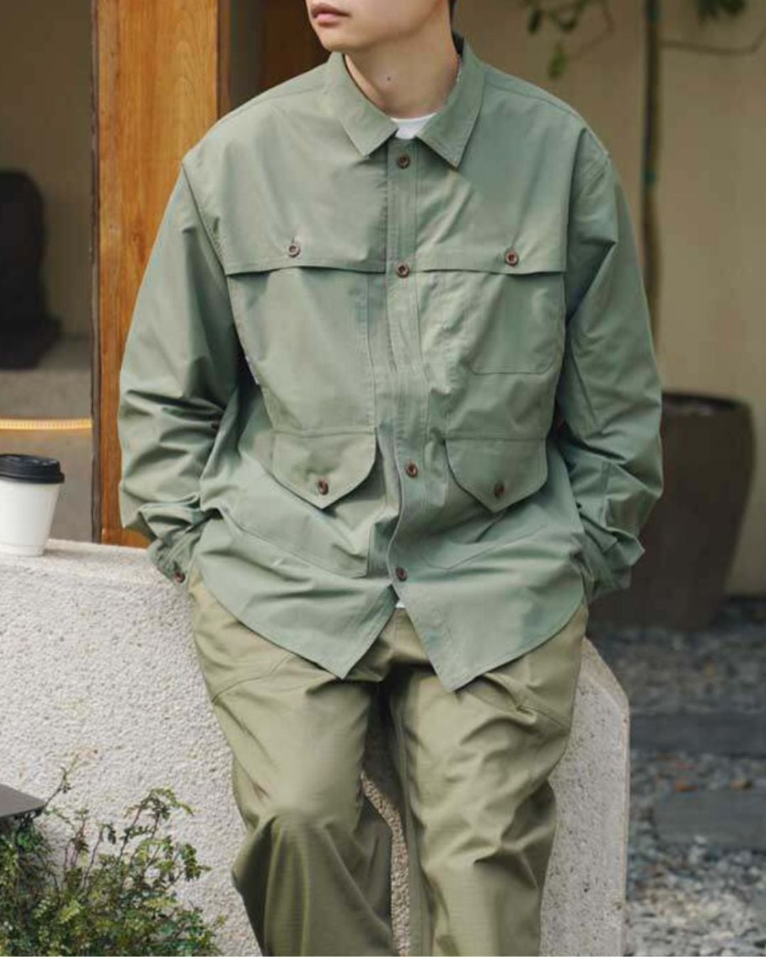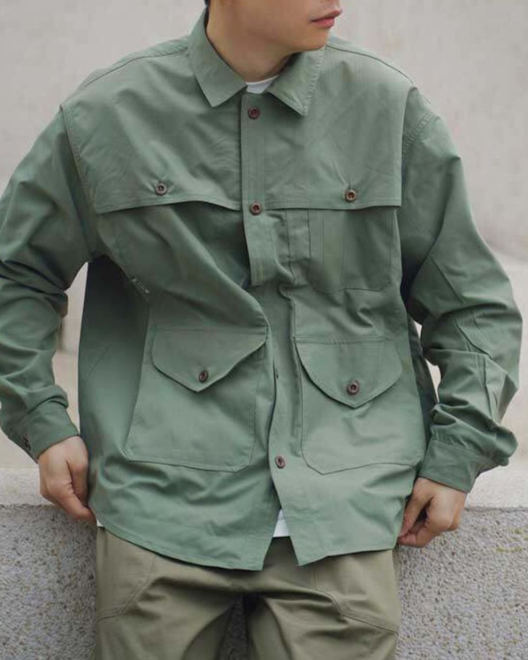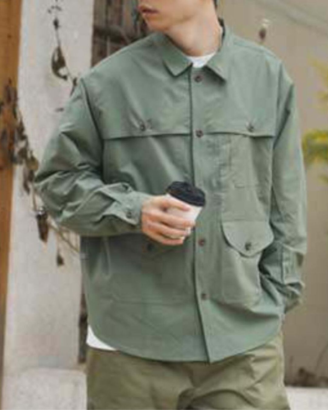 フロントのボタンデザインがアクセントになり、一枚でも存在感のある着こなしが可能です。Tシャツの上からさらっと羽織ったり、ボタンを閉めてシャツとして着こなしたり、様々なスタイルで活躍します。カジュアルなチノパンやカーゴパンツはもちろん、きれいめなスラックスとも相性抜群です。