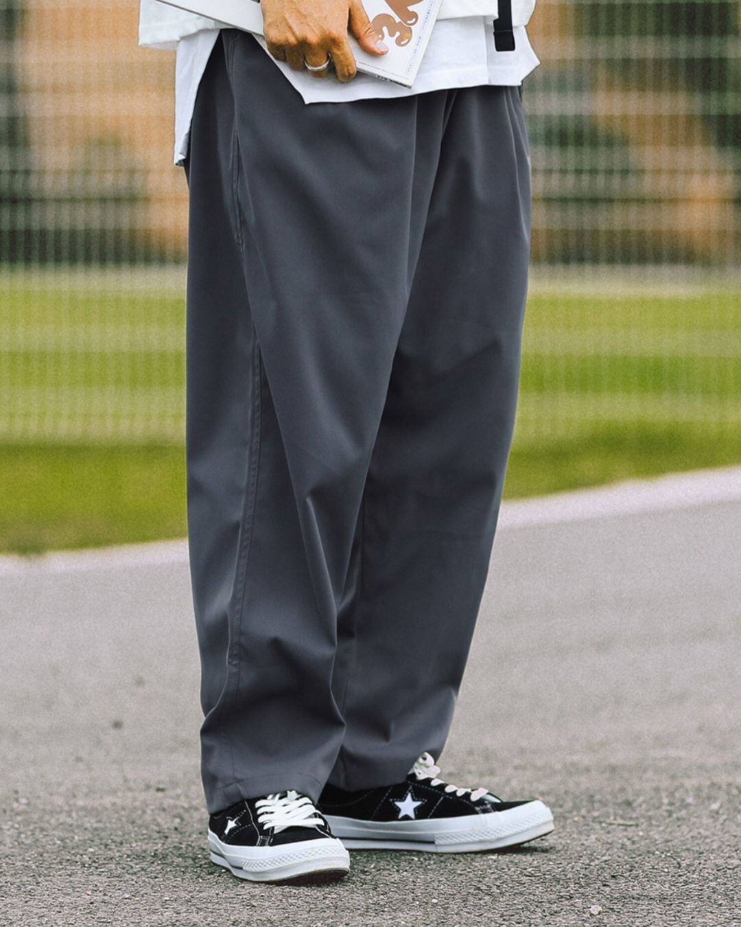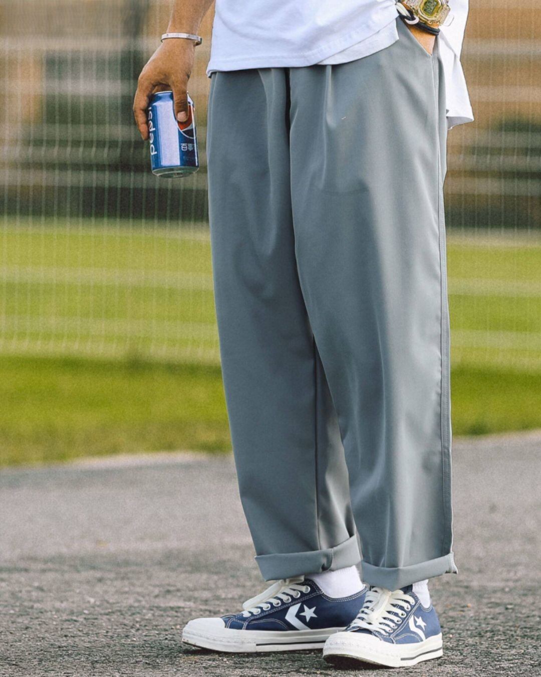 ストレートシルエットを活かした、リラックス感のある着こなしがおすすめです。スウェットやパーカーと合わせてカジュアルに着こなしたり、シャツやジャケットと合わせてキレイめなスタイルにも対応できます。ロールアップして軽さを出すのもおすすめです。