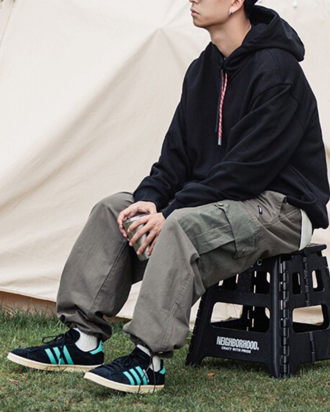 大きめのフラップポケットが印象的なカーゴパンツです。Tシャツやシャツなど、シンプルなアイテムと合わせるだけでコーディネートが決まります。アウトドアシーンでも活躍するリラックス感のある万能アイテムです。