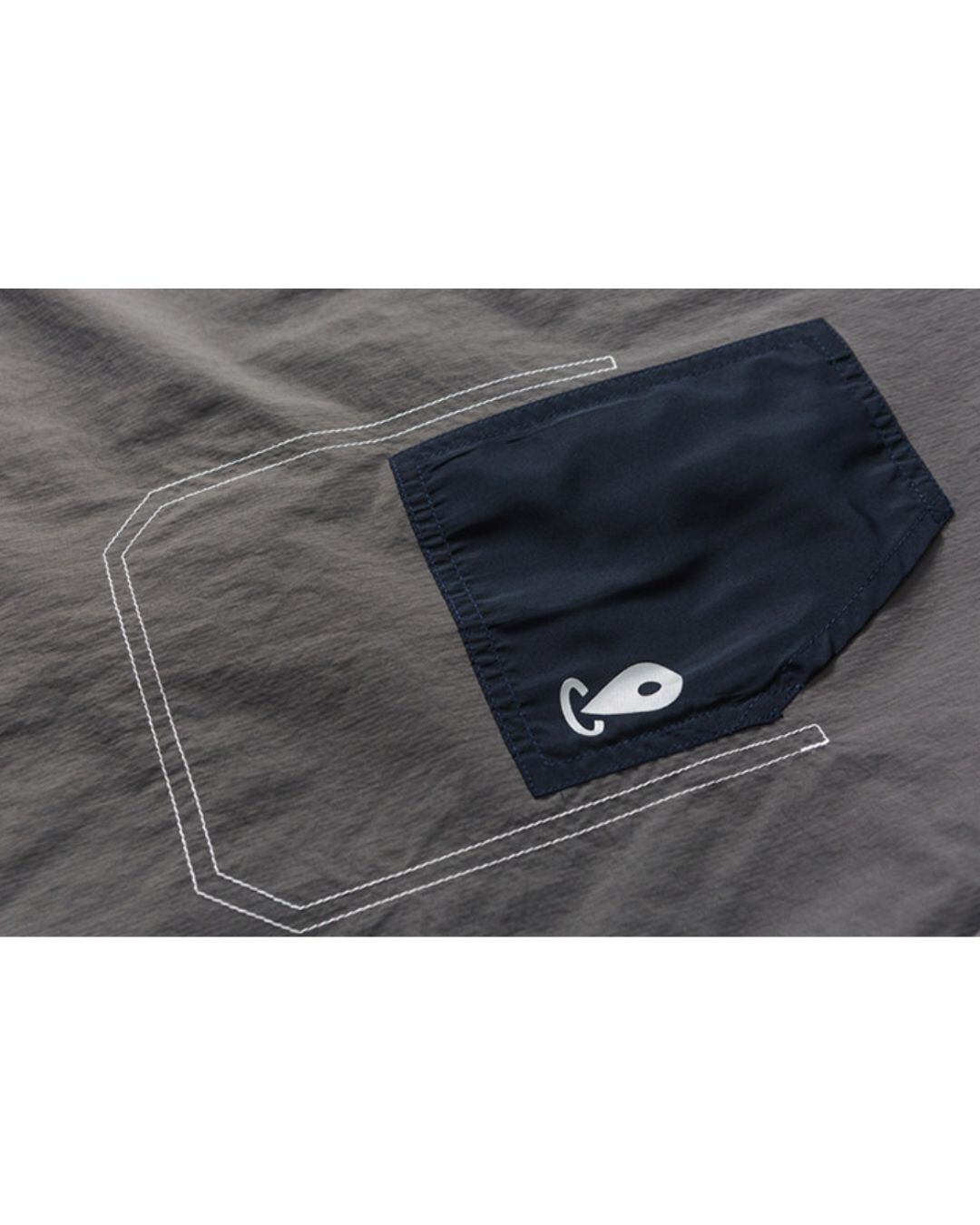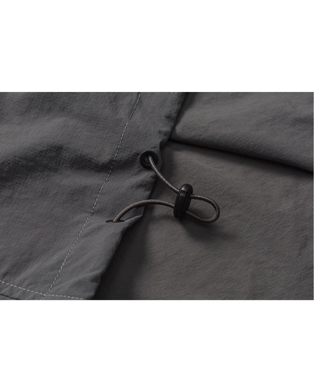 胸元の特徴的なポケットがアクセントになり、シンプルなデザインながらも個性を演出します。裾のドローストリングを絞ることで、シルエットの変化を楽しめます。カジュアルな着こなしはもちろん、ストリートテイストのアイテムとも相性抜群です。