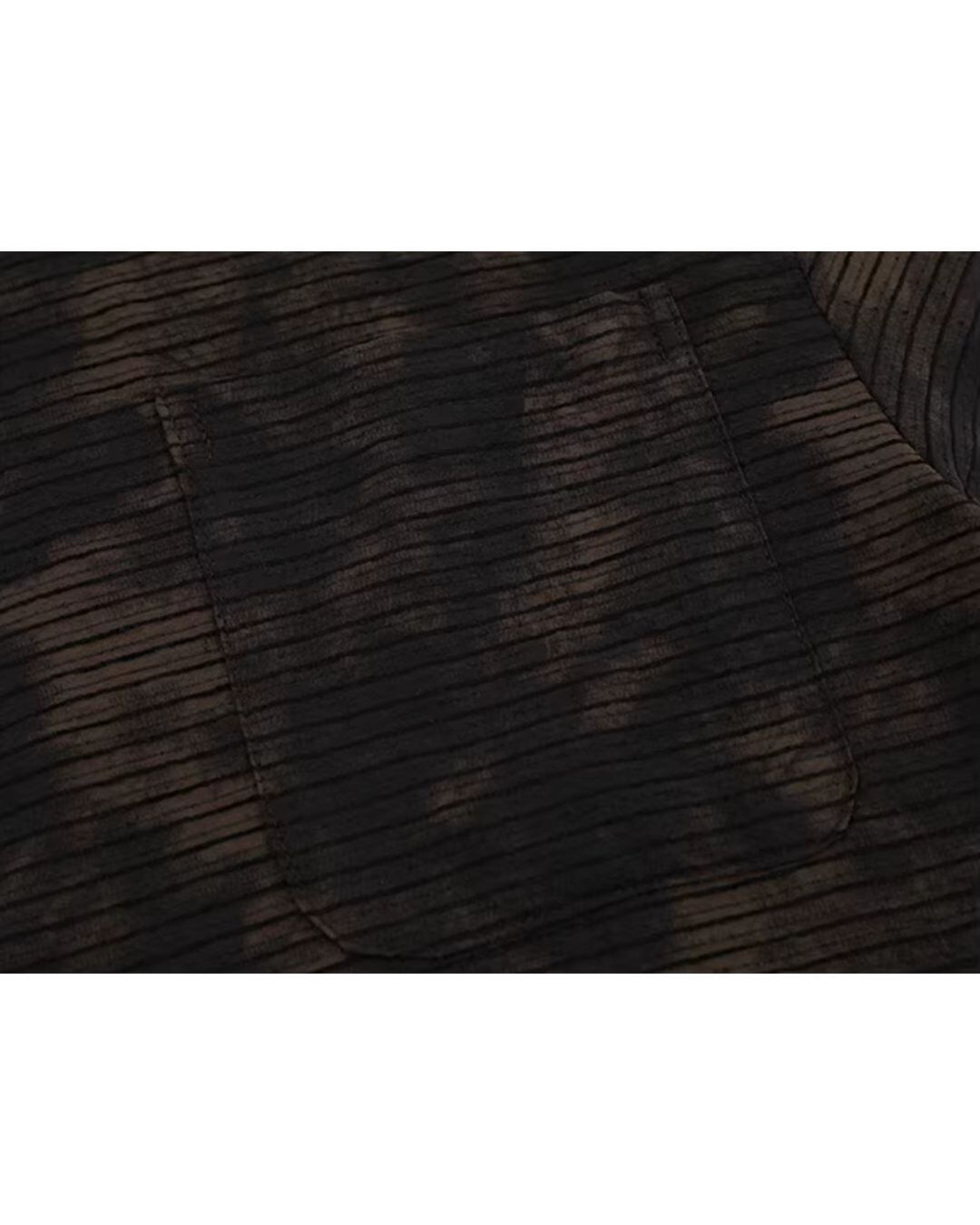 特徴的な柄を活かした、一枚での着用がおすすめです。適度なゆとりがあるので、リラックスした着心地です。夏場の暑い時期でも快適に着用できます。