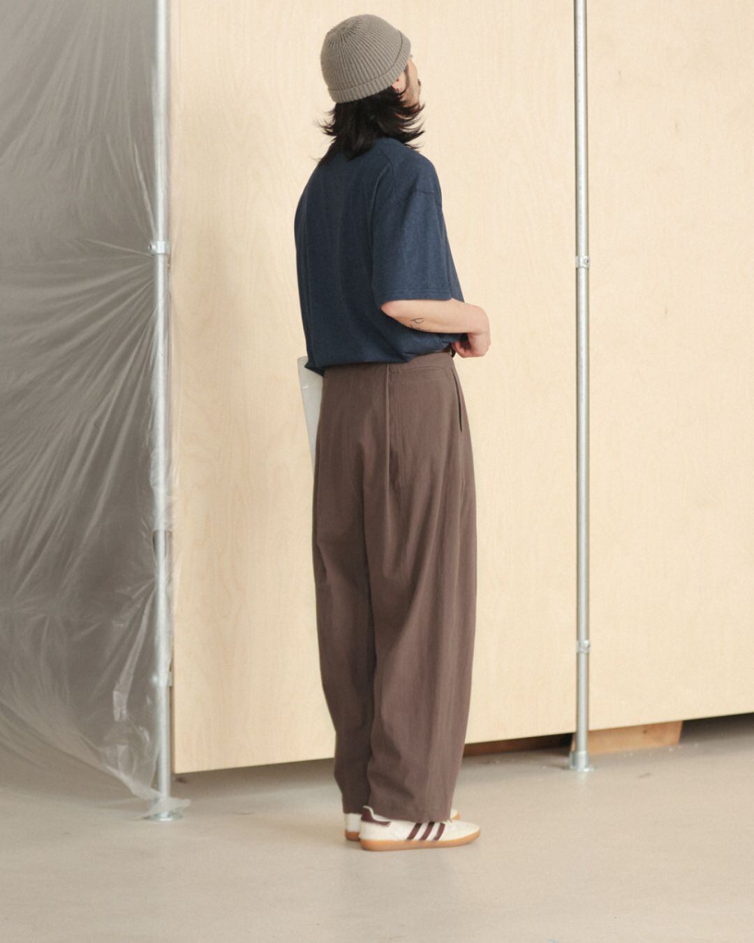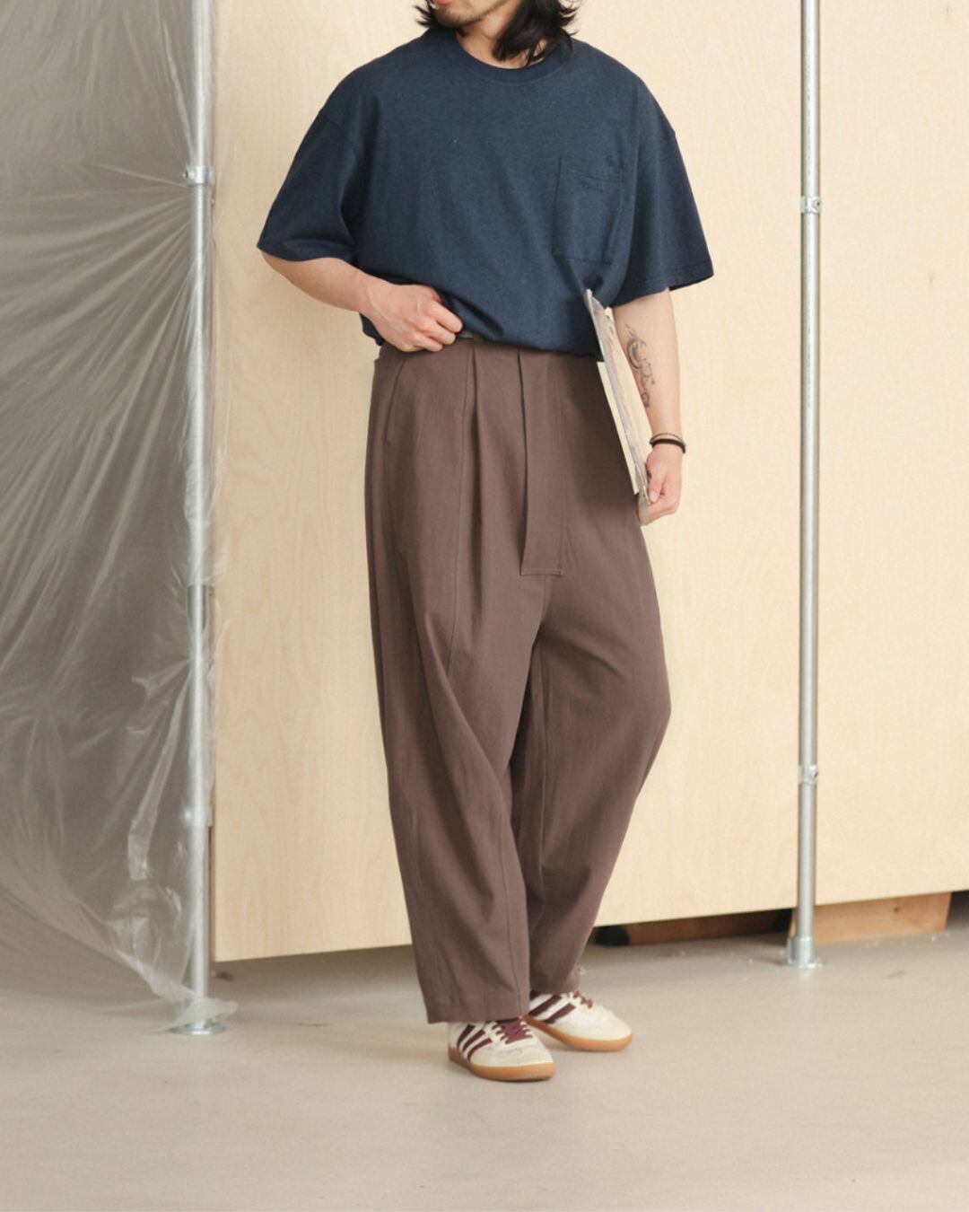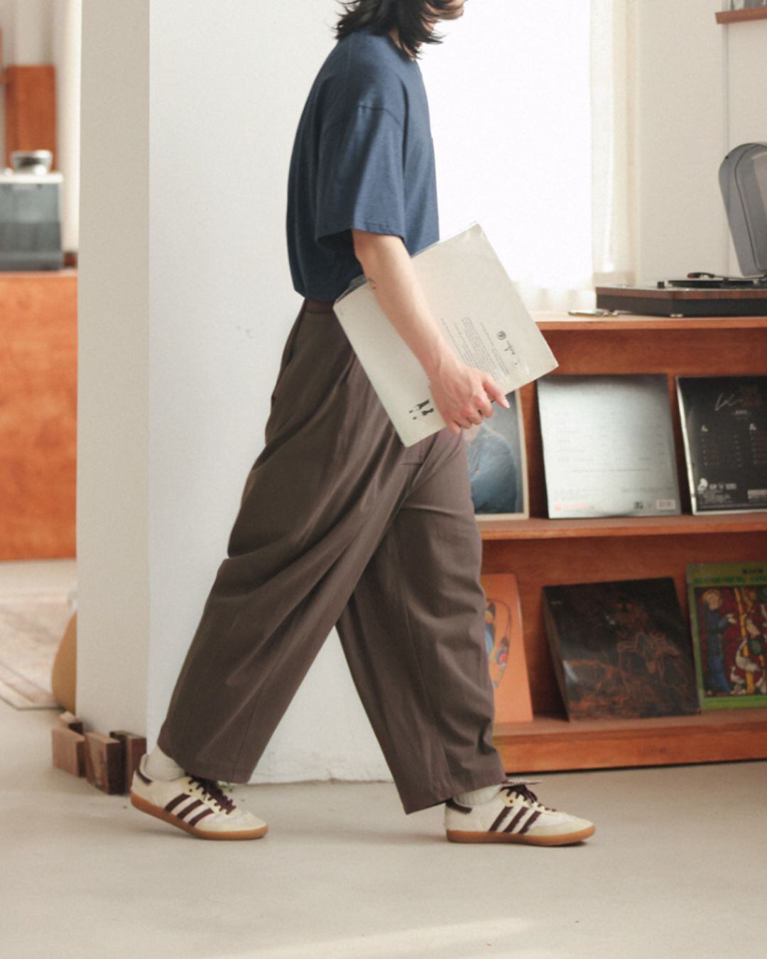 ゆったりとしたシルエットを活かして、リラックスした着こなしを楽しめます。普段使いしやすいデザインで、カジュアルなトップスと合わせたラフなスタイルや、ジャケットと合わせたきれいめなスタイルにも対応可能。