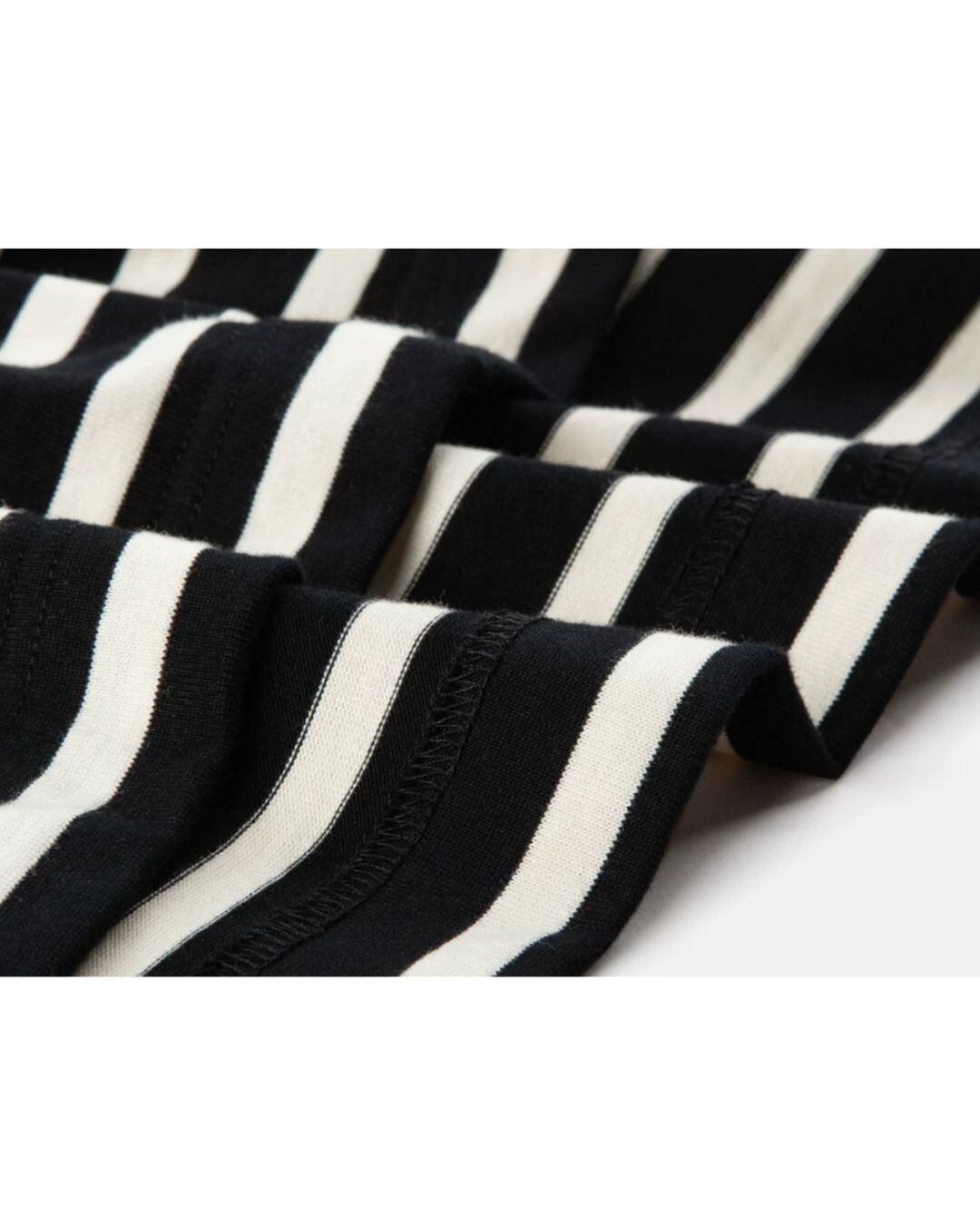 ゆったりとしたシルエットでラフに着こなせる一枚。ボーダー柄なので、シンプルなスタイリングでも存在感を発揮します。一枚で着るのはもちろん、ジャケットやシャツのインナーとしても活躍します。