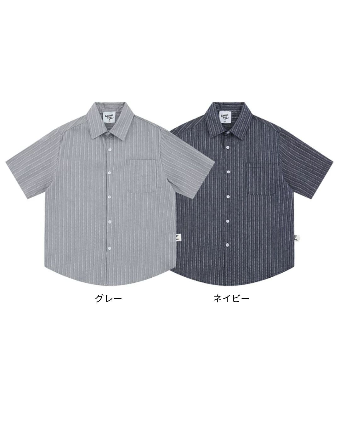 ストライプ柄パッチポケット半袖シャツ S0460