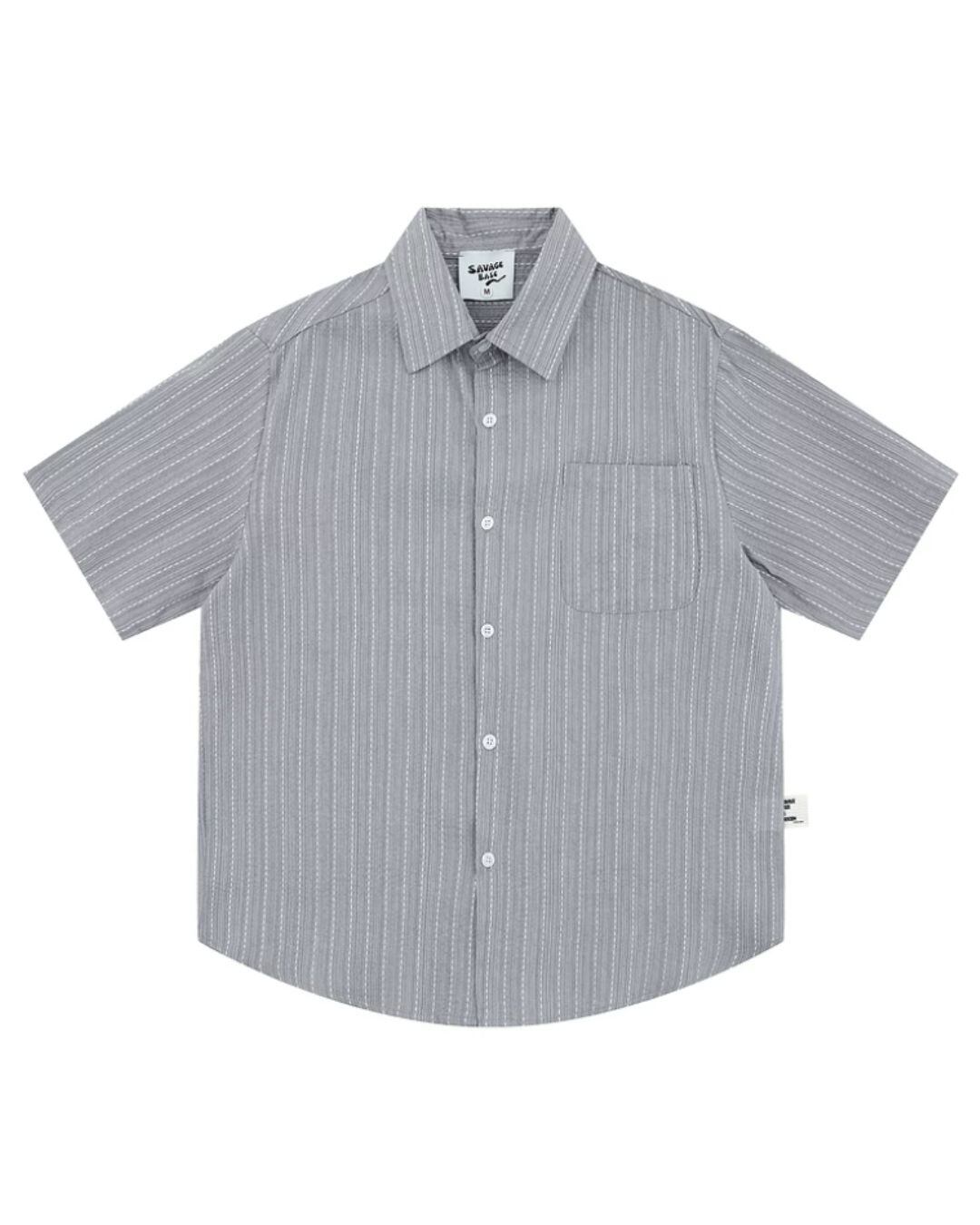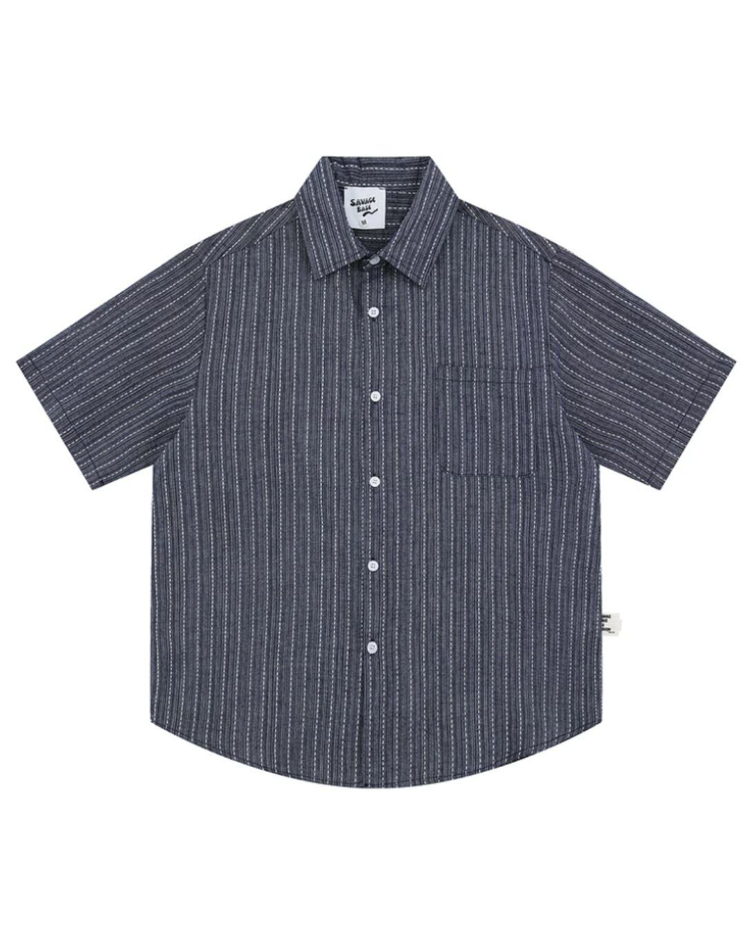 ストライプ柄パッチポケット半袖シャツ [S0460]