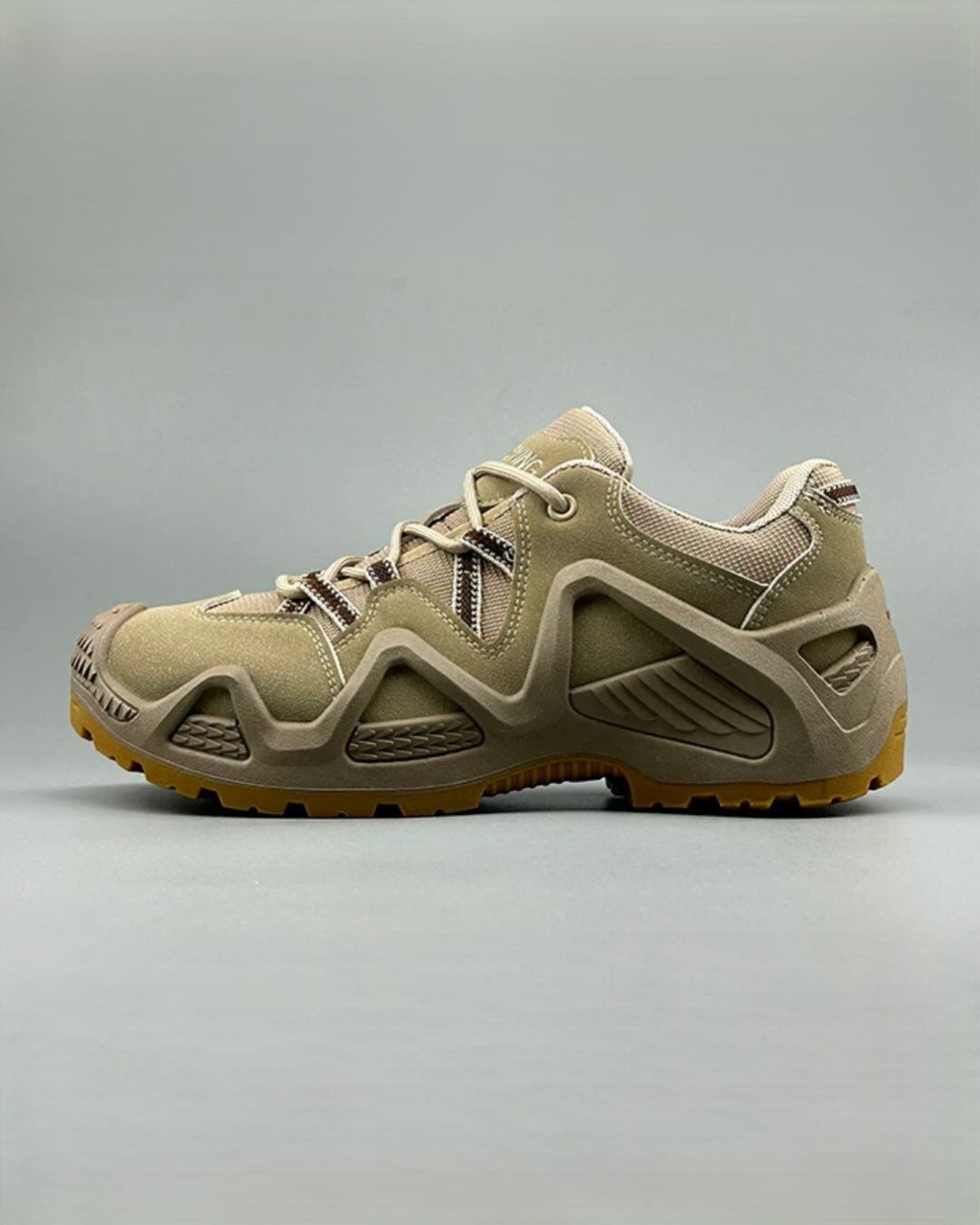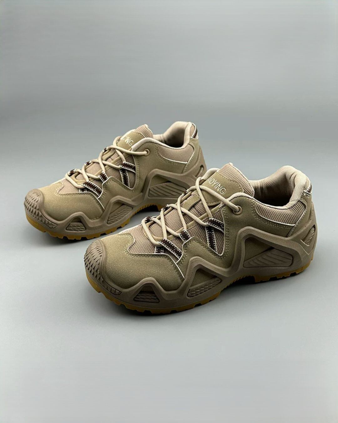 レースアップデザインとボリュームソールが、アクティブな雰囲気を演出するスニーカーです。アウトドアテイストのルックから、カジュアルなタウンユースまで、幅広いシーンで活躍します。合わせるボトムスは、カーゴパンツやデニムといったカジュアルなアイテムはもちろん、きれいめなスラックスと合わせることで、デザイン性の高さを活かしたミックススタイルも楽しめます。